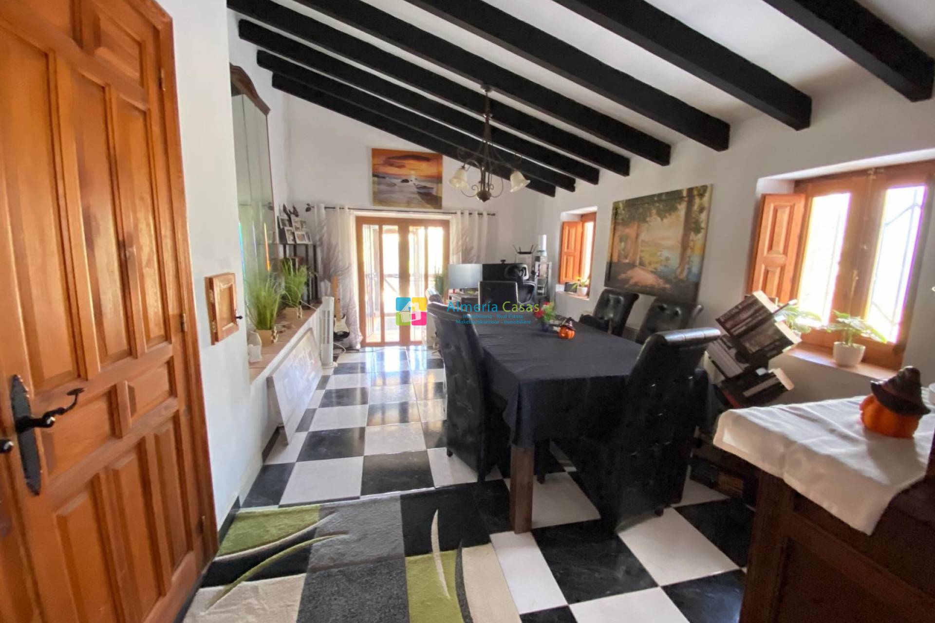 Fantastic property! This beautifully renovated country house offers 5/6 bedrooms, 6 bathrooms, a private swimming pool, garage, carport, and sits on a generous plot of just over 10,000 m². Full of charm and character, the home also includes onverted stables and two large paddocks — all just 10–15 minutes from the vibrant town of Albox. Located only 8 km from Albox, the property enjoys the perfect balance of tranquillity and convenience. In town you’ll find everything you need: shops, supermarkets, banks, tapas bars, cafés, restaurants, schools, sports facilities and a medical centre. Upon entering the property, a private courtyard leads you to the welcoming porch. Stepping through the front door, you immediately notice the quality, warmth and traditional character of the home. From the porch, you enter the impressive lounge, featuring high beamed ceilings, a large fireplace with a wood-burning stove, and air conditioning. Straight ahead from the lounge is the stunning kitchen/dining room, offering plentiful storage, an open fireplace, marble worktops and a large window overlooking the delightful garden room. To the right of the kitchen, stairs lead to the upper floor. Continuing through the kitchen a few steps leads to another handy storage area, with a door on the left giving access to the side of the property. Adjacent to this storage area is a fantastic formal dining room. Double doors from here open into a bright and spacious garden room — the perfect setting for dining, entertaining or simply relaxing while enjoying the views. Upstairs, the landing includes a useful storage room on the left. Also to the left is the spacious master bedroom with ensuite bathroom with seperate shower and air conditioning. To the right is the family bathroom. Along the hall there are three good sized bedrooms all with their own ensuite shower room. There is also a separate accommodation attached to the main house, which can be completely closed off for total independence or seamlessly incorporated into the main living space. This self-contained area includes a spacious lounge with a kitchen, a beautiful glazed summer room, an additional lounge, a double bedroom and an en-suite shower room - For privacy, there are no photos available of this part of the property. The outdoor space is truly exceptional. The gardens are beautifully landscaped with a wide variety of plants, trees and shrubs, set mainly on gravel for easy maintenance. The property features a double carport, while at the front is the walled private pool area, complete with an 8x4 pool, plenty of room for sun loungers, and a conveniento outdoor summer bar. Across the driveway you’ll find the garage and what were previously the stables. These could be converted back if desired, but at the moment they are used as a stylish chicken enclosure, various storage rooms, an additional bedroom, and a unique bar/lounge area. There is wooden pergola to the front of this building, providing extra shade and enhancing the space. Past the garden gates and along the track are two large paddocks and a field shelter. The property also benefits from oil-fired central heating and air conditioning in several rooms. In summary, this property is full of possibilities and offers an exceptional quality of life — whether as a private residence, an equestrian retreat, or a small business venture. Contact us now to arrange a viewing!