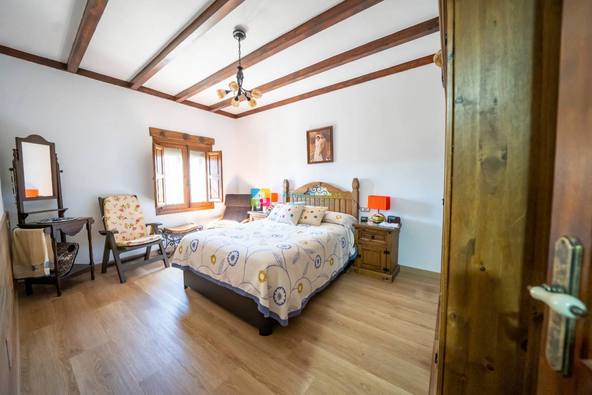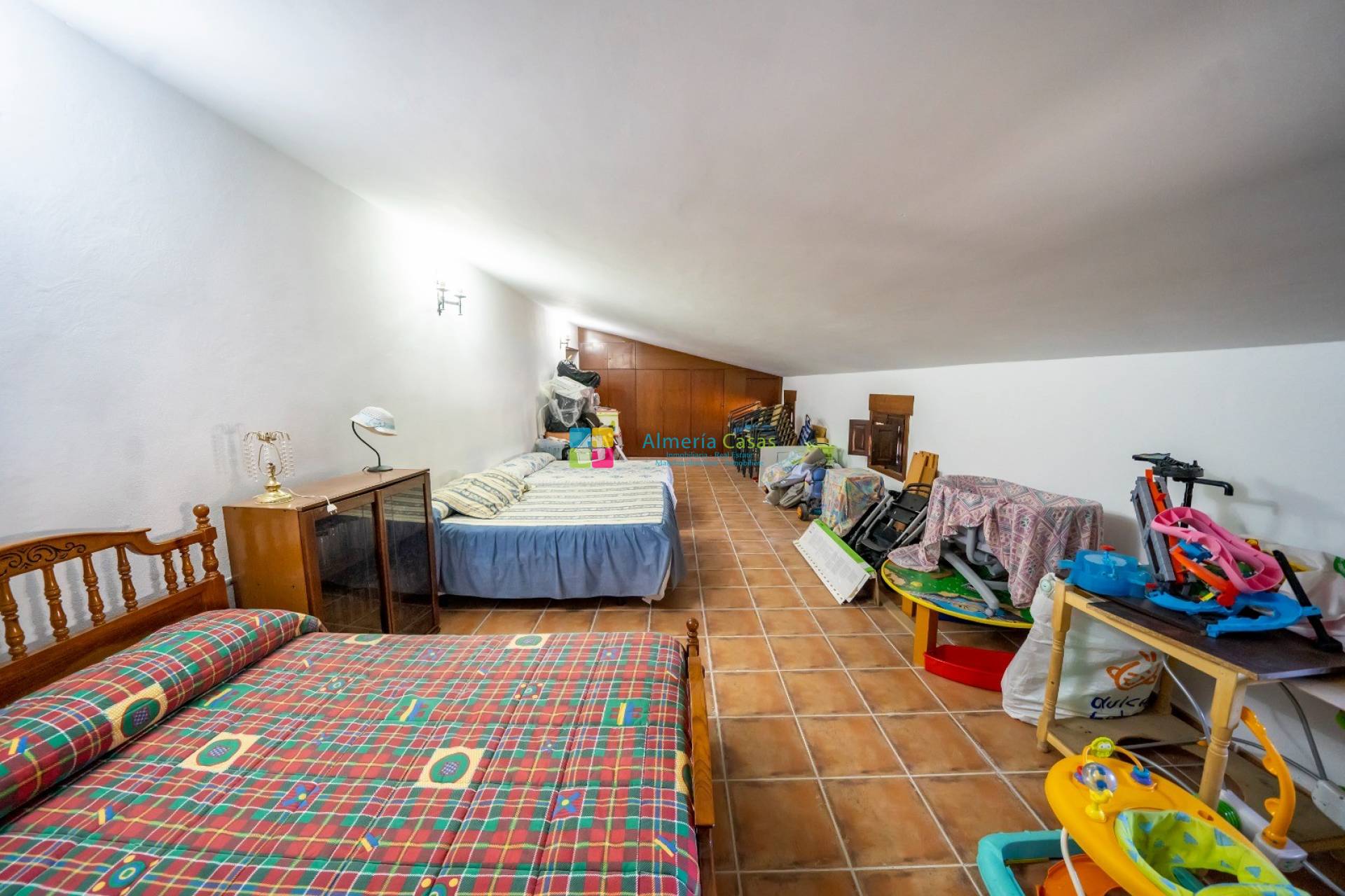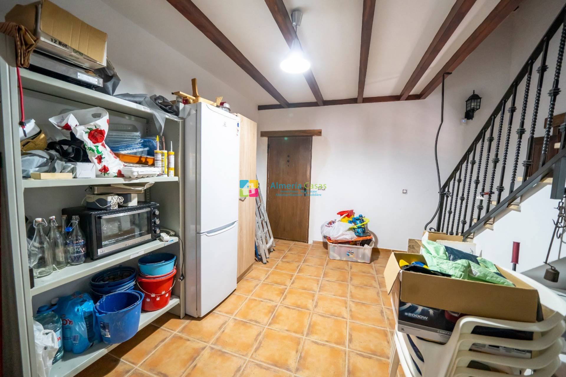A large country house full of character for sale with 4/5 bedrooms on a large plot of 1000m fully fenced and within walking distance to a popular local restaurant on the outskirts of Cantoria. There is also the option to buy a separate shed and larger plot near to the property. This is definitely one to see! A large house located in an easy accessible area. There are two gates one for car access and the other is pedestrian. To the front of the house is a huge covered porch. The main entrance door opens to the huge lounge/diner and kitchen. There is a traditional fire place and also a free standing log burner and stove and it has air conditioning. The kitchen benefits from a breakfast bar and plenty of storage place. From the lounge a hall leads to two spacious double bedrooms and a family shower room. To the end of the lounge is another room currently used for extra storage/pantry and there is a door that leads out to the rear terrace and also the stairs that lead to the upper floor. Upstairs there are two huge open spaces that can be more bedrooms or living space, a spacious bedroom and a WC. Attention to detail has not been missed in this property. Outside the plot is huge with lots of space for trees and plants, to the rear of the house there is a spacious terrace, a storage shed and a fantastic outdoor oven. There is also the opportunity to buy separate from the house a 59m shed/warehouse which is located just opposite the lane from the house on a large fenced plot of 1697m. The price of this is 45.000€ Don’t miss out and contact us now for more information!