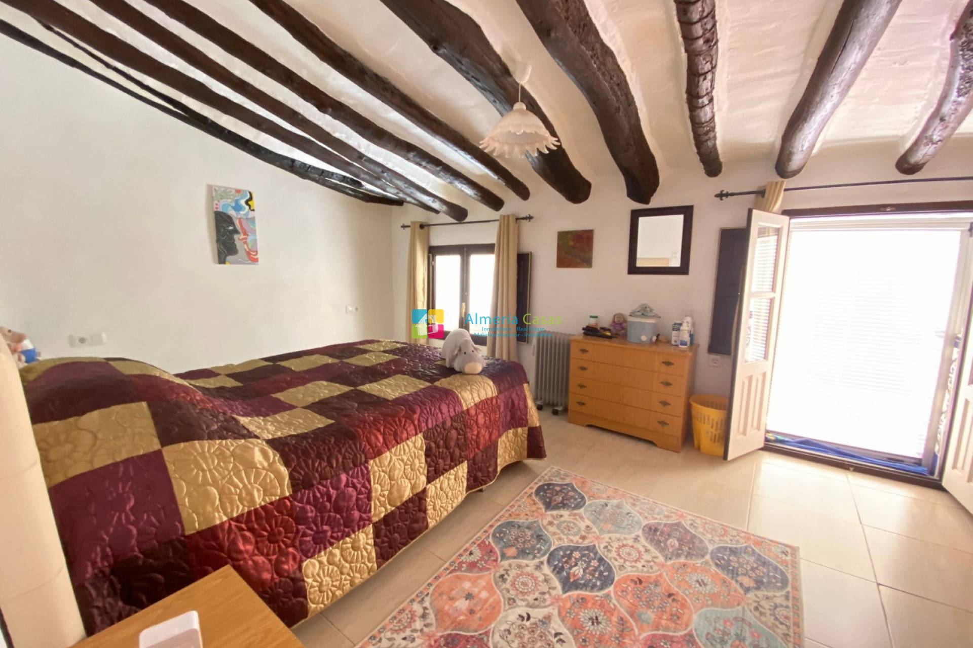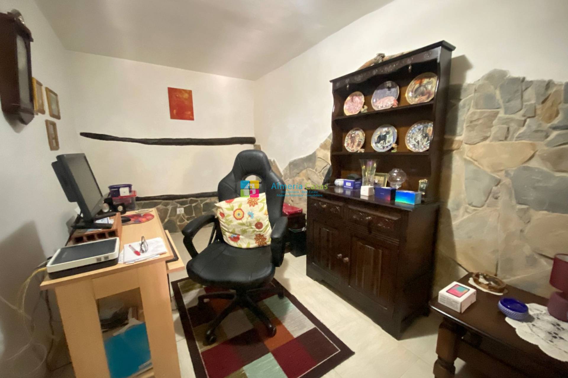 Spacious and charming village house with beautiful garden in Somontín Located in the heart of the charming village of Somontín, this spacious village home is full of character and move-in ready. It features three bedrooms, a large bathroom with shower, and a beautifully landscaped garden. Just a 10-minute drive from Olula del Río, where you’ll find all necessary amenities. The entrance leads to a cozy dining room that opens into a comfortable living room with a wood-burning stove. On the left is a room currently used as an office, ideal for remote work. The fully equipped kitchen provides access to a stunning garden filled with a variety of fruit trees, plants, and shrubs — perfect for outdoor living. A wide marble staircase leads to the first floor with a spacious landing. There are three generous bedrooms, one of which has access to a private terrace. The very spacious bathroom with shower is reached by a few steps from the landing. A perfect home for those seeking peace, space, and comfort in an authentic Andalusian setting. A viewing is highly recommended.