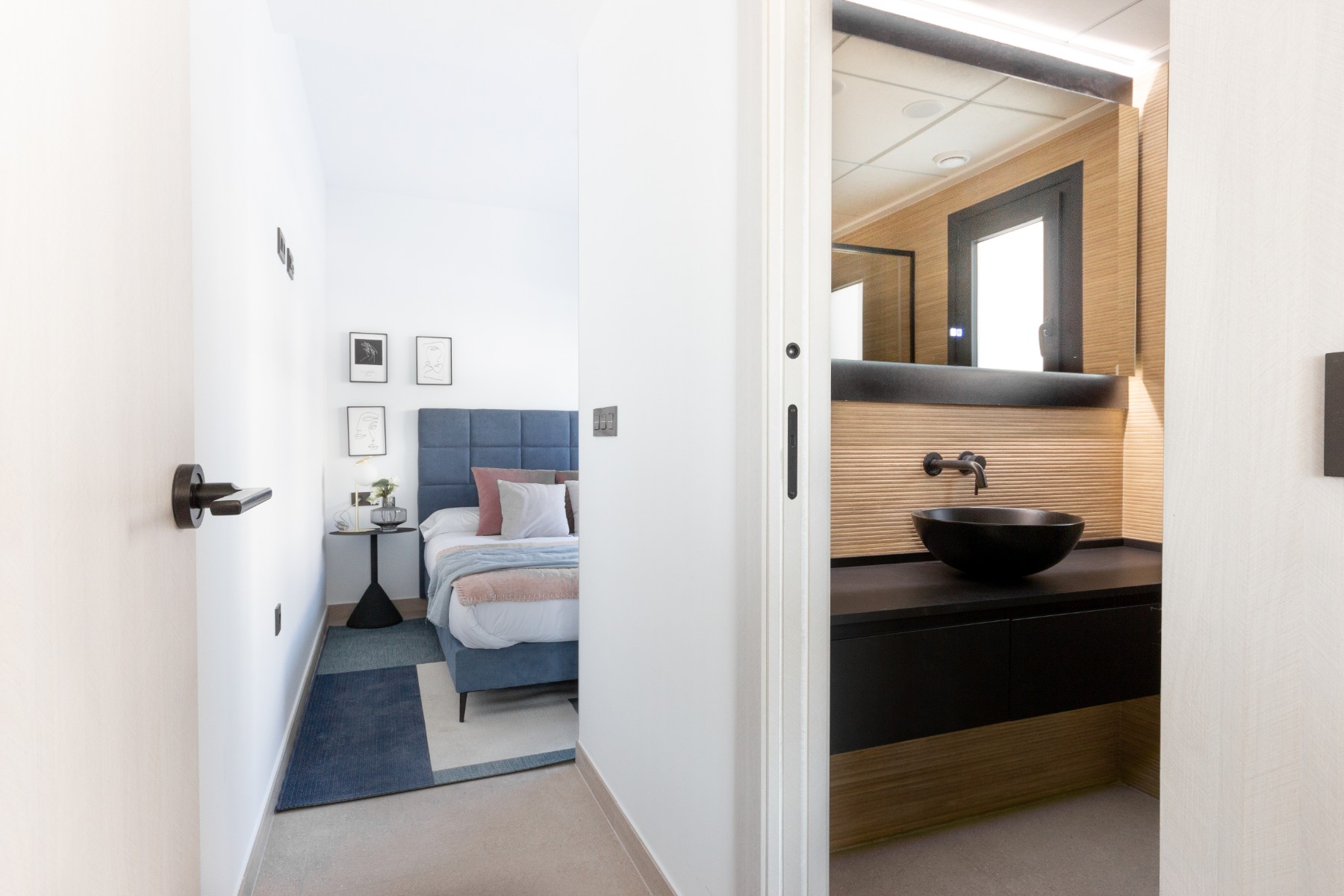 Discover the Charm of Living in Royal Park Sea: Comfort and Nature Just a Step from the Sea in Guardamar del Segura. Welcome to Residencial Royal Park Sea, an oasis of peace and sophistication located in the charming town of Guardamar del Segura. This exclusive residential complex has been designed for those seeking a calm and relaxed lifestyle, surrounded by the natural beauty of the Costa Blanca. Privileged Location: Just 800 meters from the crystal-clear water beaches and fine sand, Royal Park Sea stands as a perfect refuge for lovers of the sea and nature. Surrounded by lush pine forests, this residential offers a serene environment, ideal for unwinding and enjoying the outdoors. Dream Homes: Each of our three-bedroom, three-bathroom homes, with an additional toilet, has been carefully designed to maximize comfort and quality of life. Underfloor heating in the bathrooms adds a touch of luxury and comfort that is appreciated in every detail. Spaces Thought for You: Enjoy spacious terraces where sunsets become a daily spectacle. The spacious living rooms and open kitchens create the perfect ambiance for family gatherings or simply to enjoy your oasis of peace. In addition, each home includes a garage and solarium, further expanding your personal living space. Top-Quality Finishes: The white lacquered interior carpentry and the lined built-in wardrobes reflect a modern and clean aesthetic. The fully furnished kitchens, equipped with the latest generation appliances, guarantee functionality and style. Close to Everything You Need: Within a few minutes, you will find a shopping center with a wide range of leisure, shopping, and services, ensuring that everything you need is within reach. Royal Park Sea is more than a home, it's a lifestyle where tranquility, comfort, and the beauty of nature merge to create a unique environment. We invite you to discover it and start living your dreams on the shores of the Mediterranean. Contact us today and take the first step towards the life you deserve.