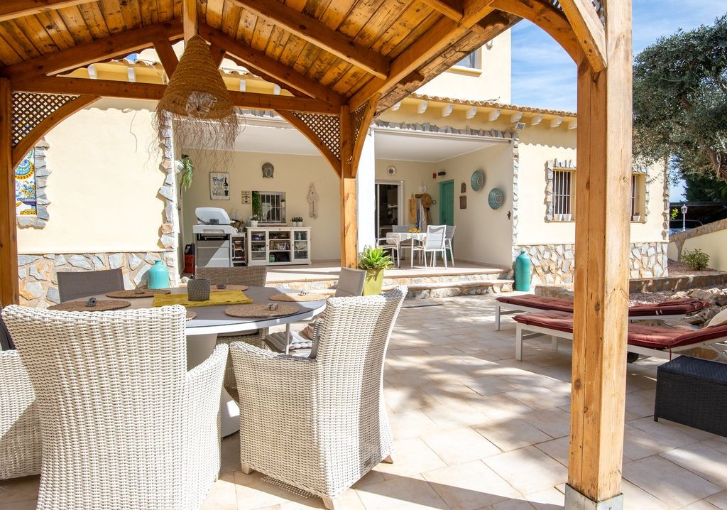 We are pleased to present this stunning detached luxury villa in Lomas De La Juliana, located in the Costa Blanca South Region. This is a popular area, due to its great facilitites and amenities at such close proximity. Traditional Spanish Local Fiestas & weekly markets with a fresh local produce. Easy access to the motorway for numerous destinations.This villa is located in-front of endless rows of orange & lemons groves and has the most amazing views! Entering the property you are welcomed with a large open plan kitchen and dinning room with a downstairs bathroom. In the next room you have the double sized living area with access to private swimming pool.From the kitchen you also have double slidding doors that lead to the rear garden. BBQ & dinning areaAlso on the Ground floor you have 2 large double bedrooms, both En-Suites and a separate utility room. (one of the bedrooms benefits from a walk-in wardrobe) Upstairs you have the huge master bedroom (with the possibility to add another bedroom) En-suite, office and 2 walk-in wardrobes. This property also has a separate guest house with its own entrance. Completely self contained with a large living room, kitchen, double bedroom en-suite with another walk-in wardrobe. The large plot surrounding the property is extremely well kept, offering sun all day, and plenty of different seating areas to enjoy. All kinds of fruit trees and plants. Drive way with an electric gate with space to fit at least 2 car's. The property also has a spacious garage where you can fit a further 2 car's or you could also be used for extra storage. Every little corner inside & out of this stunning luxury villa has been thought out and decorated beautifully, with so much attention to detail! Be prepared to be blown away.You have Sport facilities just across the road in the Tennis Club.La Finca Golf Course just a 3 minute drive15 Minutes to the famous blue flagged sandy beaches of Guardamar del Segura35 Minutes to Alicante Airport.