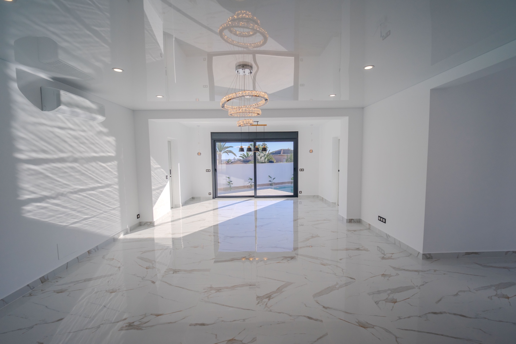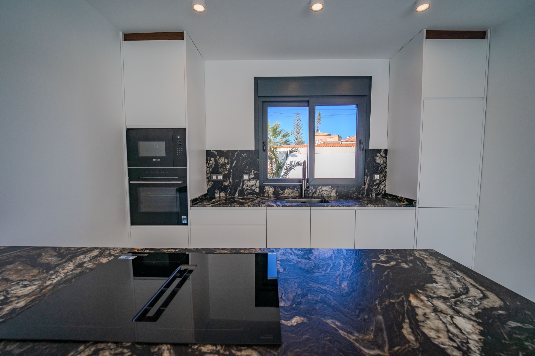 Stunning Fully Refurbished Bungalow Villa in Ciudad Quesada (Alicante) A Perfect Blend of Contemporary Luxury and Mediterranean Elegance Located in the desirable area of Ciudad Quesada (Alicante) and only moments from the lively town centre, this exquisite bungalow villa has been completely refurbished with exceptional attention to detail. Blending traditional Mediterranean charm with a sleek contemporary finish, this property offers luxury, comfort, and privacy in one of the Costa Blanca’s most sought-after locations. Set on a 650 m² private plot and offering 180 m² of beautifully designed interior living space, the villa is move-in ready and finished to an outstanding standard — no expenses were spared. Outdoor Spaces Beyond the electric entrance gate, you’ll find a stylish, low-maintenance Mediterranean garden that frames the home perfectly. The private swimming pool sits alongside expansive terraces designed for sunbathing, dining, or entertaining. The impressive large rooftop solarium provides open views and an exclusive area to relax, host gatherings, or enjoy the warm Alicante microclimate. Interior Layout The interior features a bright, open-concept design with generous natural light throughout. 4/5 spacious bedrooms, all designed as suites4 luxury en-suite bathroomsBedrooms prepared with built-in wardrobes, ready to be installed to each client’s preferred layoutModern open-plan kitchen with premium appliances and striking natural-stone countertopsUnderfloor heating throughout the entire propertyAir-conditioning (hot/cold) in every room The combination of layout, light, and high-end materials creates a comfortable and elegant living environment. Additional Features Advanced smart home domótica system controlling lighting, climate, and securityDedicated laundry and storage roomTop-quality finishes throughout, including designer lighting, premium tiling, and high-spec carpentryTurn-key luxury, refurbished with impeccable craftsmanship Location Just minutes from Ciudad Quesada’s town centre, with its restaurants, supermarkets, services, and leisure facilities, this villa offers the ideal balance between convenience, privacy, and modern Mediterranean living.