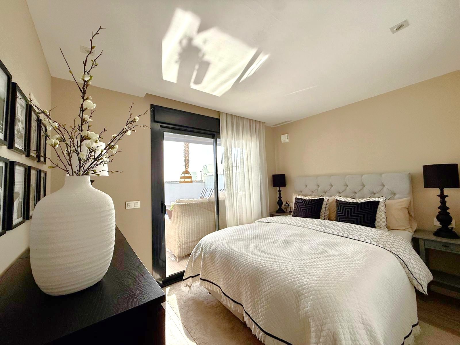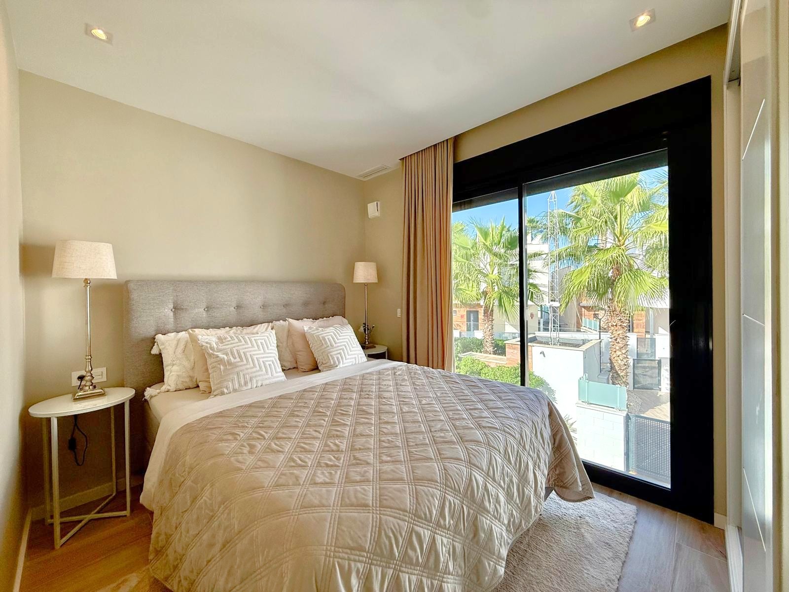 Modern and superbly presented detached villa with heated private pool in a gated residential area at 1,5 km distance to supermarket, restaurants, bars, etc. The property distributes over an entrance hall, followed by an open plan kitchen, dining and sitting area onto the terraces next to the pool. On ground floor we also have a luxury master bedroom with its en-suite bathroom, and the laundry. In upper floor two more double bedrooms and a family bath. The property is sold partly furnished (subject to inventory) Price: 449.900€Council Tax: 500€ per yearCommunity Fee: 500€ per year