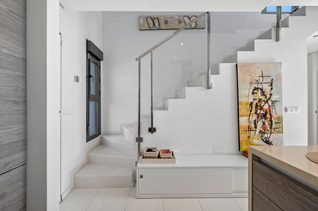 For sale Townhouse with private heated pool in La Cinñuela, Punta Prima For sale modern corner townhouse that combines style, comfort and functionality in the best way. Here you will get a home that stands out - both with its well-thought-out floor plan and its unique plot with lots of privacy.The homeThe house offers 3 good bedrooms and 2 modern bathrooms, where everything is kept in bright and inviting materials. The home appears extremely well-maintained and ready to move in, so you can move straight in and start enjoying life under the sun. Under the house you will find a full basement that has not yet been utilized - perfect as a future fitness room, wine cellar, home theater or just extra storage space.The outdoor area - pure luxuryOutside, a fantastic private outdoor area awaits, designed for relaxation and socializing. The private swimming pool can be heated and offers a built-in swim trainer - ideal for exercise all year round. In addition, there is a seating area with air jets (semi-jacuzzi), where you can relax and enjoy the bubbles after a swim. There is also an outdoor shower so you can cool off if you don't prefer to jump in the pool.The plot has a lovely garden area, and the large pergola forms the frame for a delicious outdoor kitchen with both a sink and a refrigerator - perfect for summer evenings with family and friends. Extra storage cabinets in the garden provide practical storage for cushions and equipment.Comfort and convenienceThe property includes two parking spaces in the underground parking garage and a storage room of approx. 6.6 m². Here you will find everything you need - both for everyday life and holiday life.LocationThe home is located in a quiet and attractive area close to all amenities - supermarkets, cafes, restaurants and shopping. The southeast-facing location ensures sun most of the day, and the area is known for its pleasant climate and relaxed atmosphere.