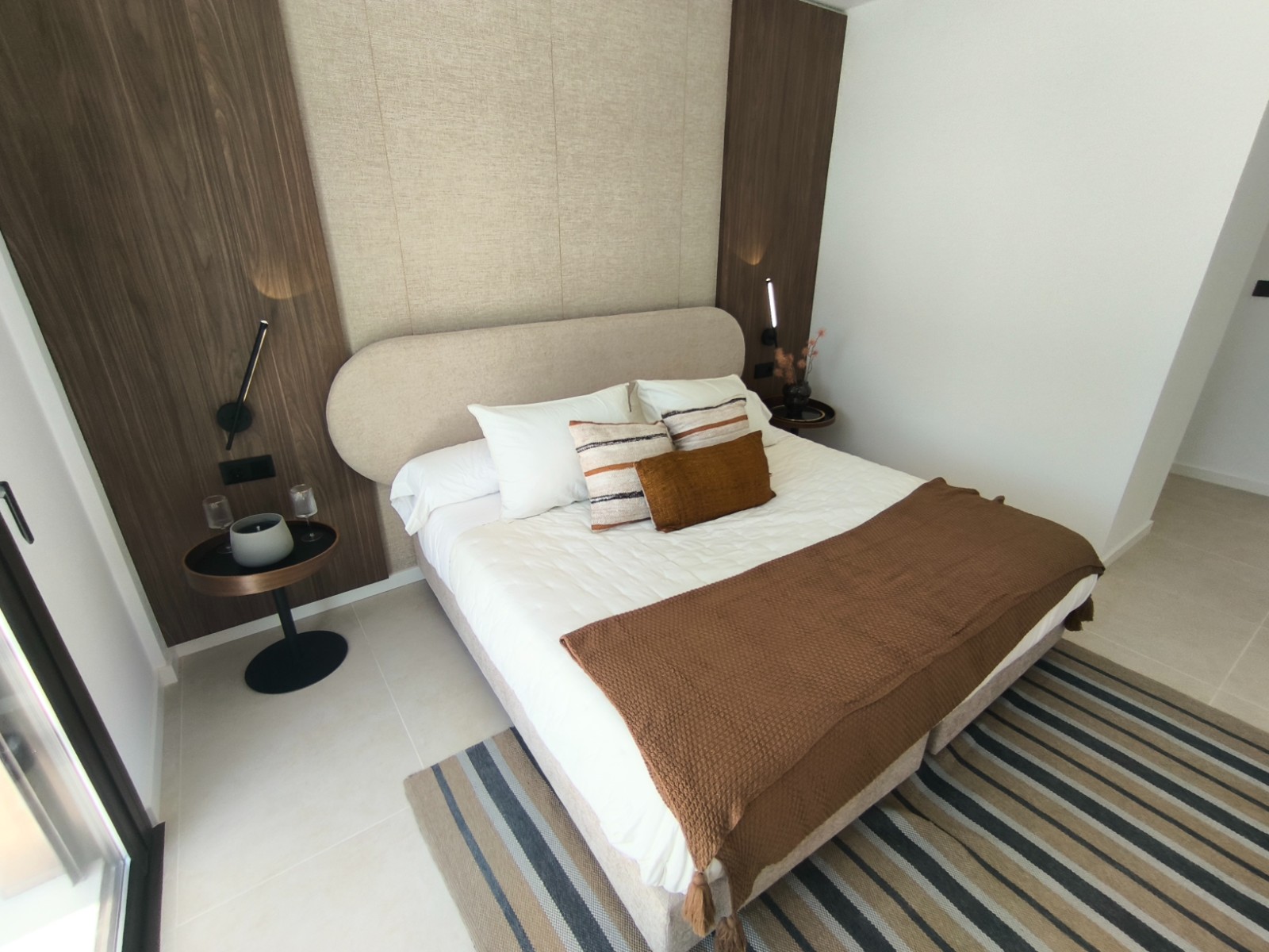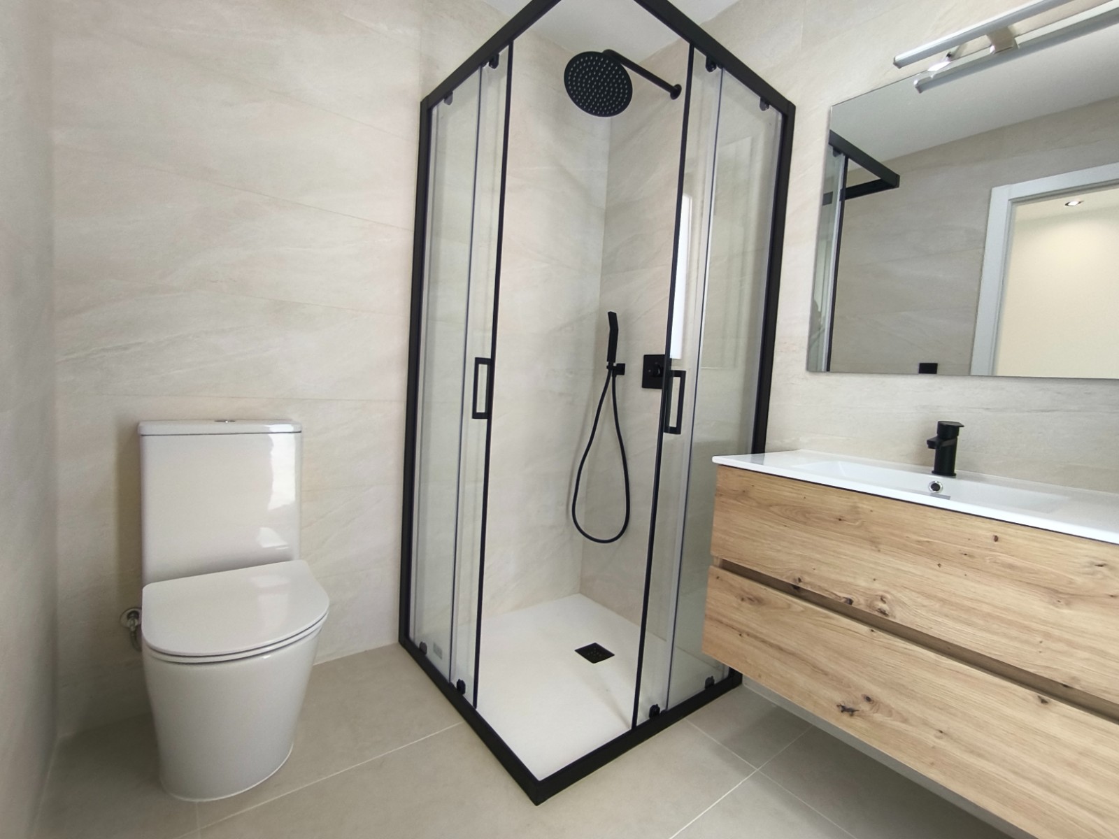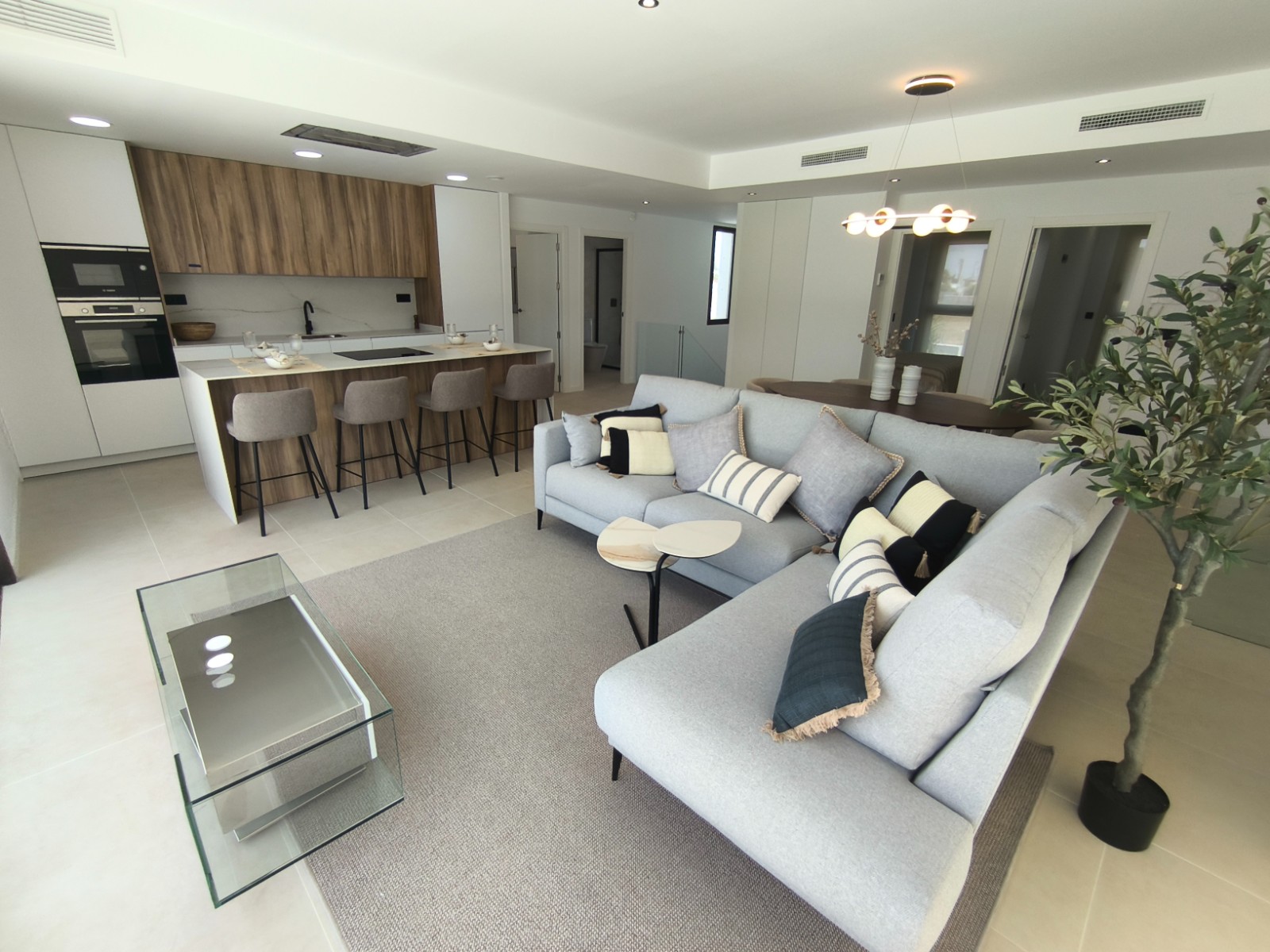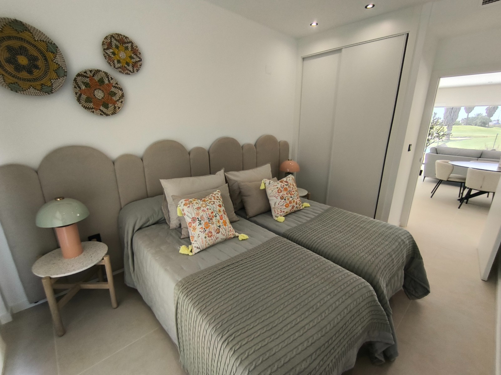 Exclusive contemporary villa with spectacular views of the Serena golf course. The property offers 4 bedrooms and 3 bathrooms, as well as a fully finished basement that includes a garage, bedroom, laundry area, and bathroom. Enjoy your own private pool and a spacious solarium, perfect for making the most of the Mediterranean climate. The open-plan kitchen is equipped with a Neolith worktop, under-mount sink, and single-lever faucet, designed within a modern and functional space. Key features include: Electric shutters. Pre-installation for ducted air conditioning. 150L aerothermal system for hot water. 8kWp photovoltaic installation with 6kWp inverter. White lacquered interior carpentry and built-in wardrobes with drawers. Grey aluminum exterior carpentry with thermal break and double-glazed Climalit windows. Bathrooms with resin shower trays, built-in black faucets, and suspended porcelain sinks. Located in one of the most sought-after areas of the Costa del Mar Menor, the property offers a peaceful and exclusive setting, with all services nearby and excellent access to the motorway. A unique opportunity to live in style and comfort in a privileged enclave.