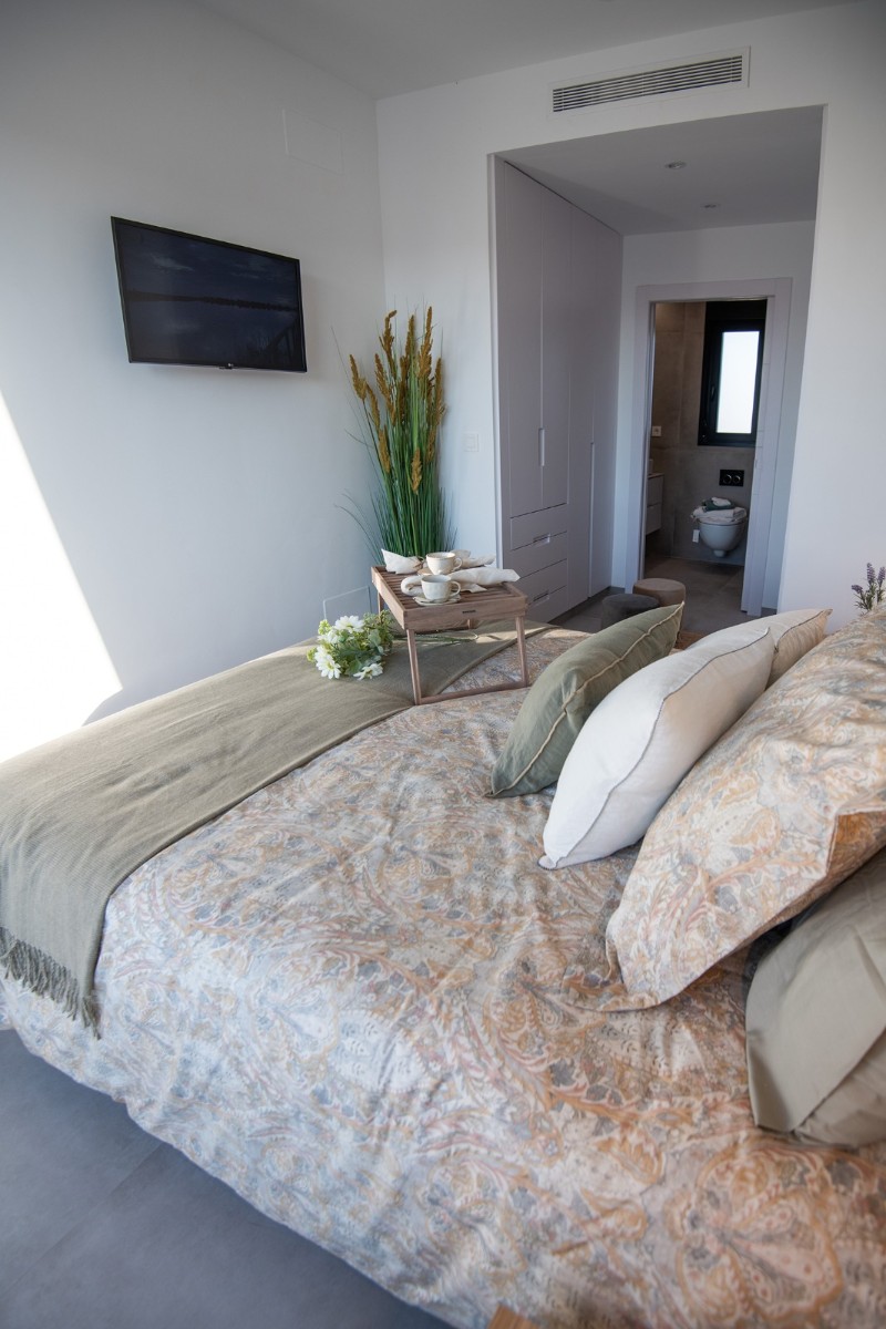These exclusive luxury villas come with a private pool, closed garage, solarium, and a closed summer kitchen, ideal for enjoying the Mediterranean climate in a setting of comfort and elegance. With 3 bedrooms and 3 bathrooms, they feature included appliances, outdoor sound speakers, underfloor heating in all 3 bathrooms, and suspended modern sanitary ware. Enjoy a private pool with a waterfall, LED lighting inside and out, and an efficient aerothermal water heater. The kitchen, fully equipped with an island, is perfect for culinary enthusiasts. Artificial grass ensures easy maintenance, and pre-installation for pool heating allows you to enjoy it year-round. Additionally, the bathrooms are fully equipped, and the air conditioning system with Air Zone offers personalized climate control. The pergola on the solarium provides the perfect place to relax in the shade, and electric blinds (except in bathrooms) and pre-installation for an electric car charger complete this luxury offer. Prime location: Just 750 meters from the beach, these villas offer the opportunity to live close to the Mar Menor and enjoy its calm waters. Santiago de la Ribera is an area that combines tranquility with services such as restaurants, shops, supermarkets, and proximity to educational and health centers. Just a few kilometers from Murcia International Airport, the villas are well connected to cities like Cartagena and Murcia. These properties are ideal for those seeking luxury, comfort, and an unbeatable location. Contact us for more information and live just a few meters from the sea!