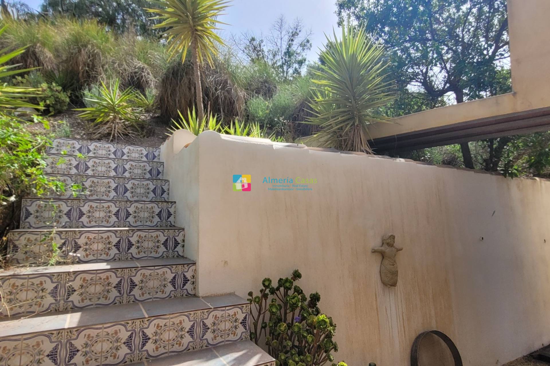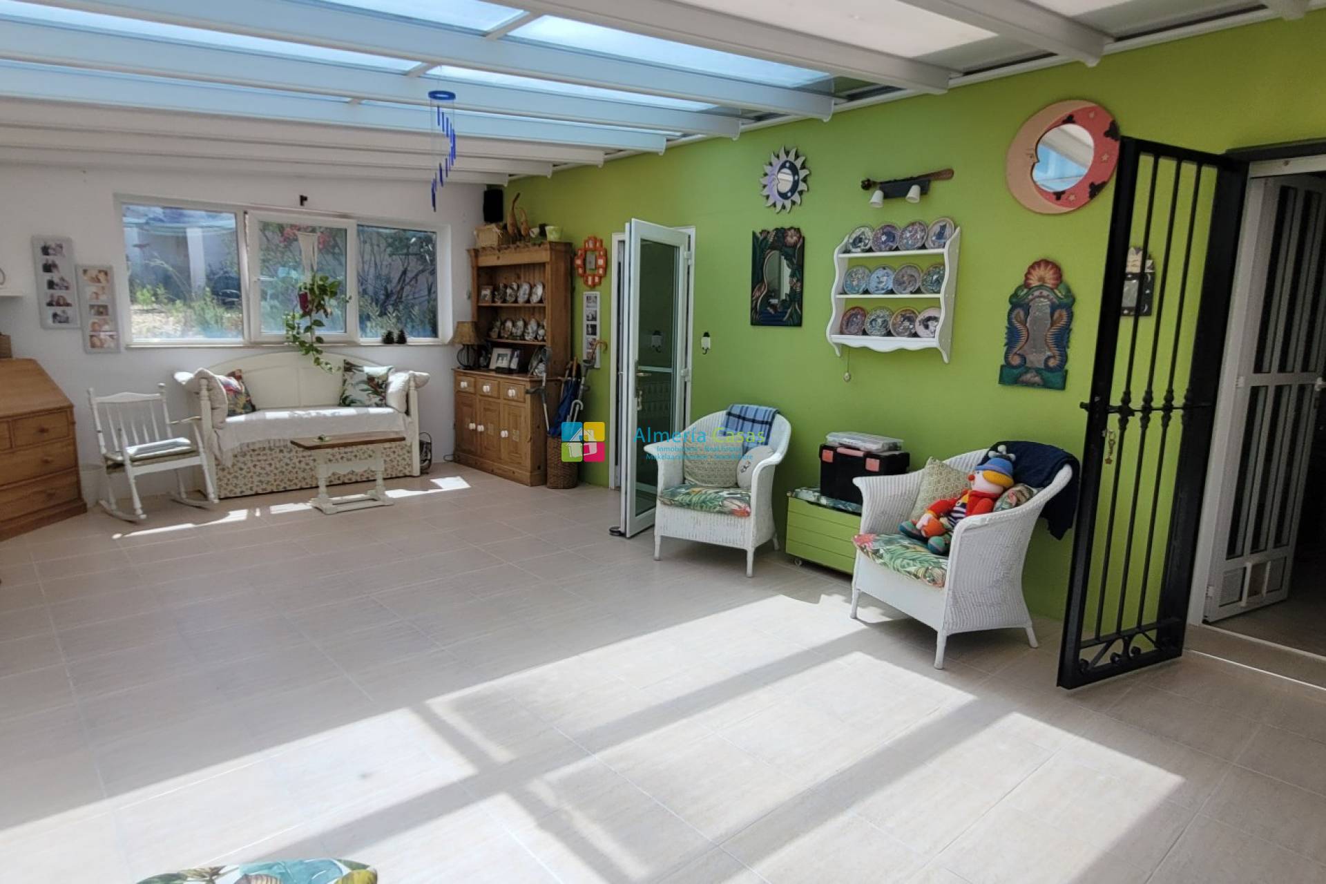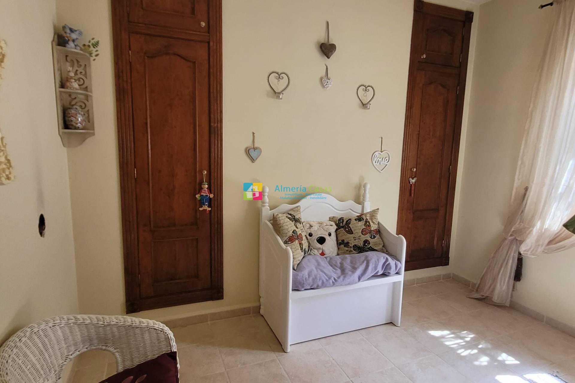 Beautiful 4 bed, 4 bath villa on a large plot with multiple living areas in Zurgena. This beautiful property is located on the outskirts of Zurgena, around 10 minutes from downtown Zurgena where all the amenities such as bars, restaurants, pharmacy, etc. can be found and approximately 40 minutes from the beautiful Almeria beaches. There is access through a double vehicle gate that leads to a low maintenance gravel plot with plenty of parking space. The house has different entrance doors. From the main one there is access to a spacious and bright hall, to the left is a closed porch from where there is also access the house, it has leads to the front part of the house and double doors to access the dining room. Back to the hall and this time in front of it there is a corridor and access to the living room that has a beautiful fireplace and air conditioning. Continuing down the hall and on the right side is the beautiful master bedroom that benefits from air conditioning, double access doors to the front of the house, fitted wardrobes and an en-suite shower room. Then two more bedrooms also with fitted wardrobes on each side of the corridor and a bathroom in the middle of them. Back to the living room and this time on the left is the dining room that has access to the closed porch and the kitchen that also has built-in cabinets for storage. From the kitchen there is access to a beautiful room that is used as a living room, it can also be used as a dining room and has access to the back of the house and to the left side where there is a nice bar and outdoor kitchen with barbecue. There is also a shower room in that area. On the right side of the house and separated from it, is the garage with enough space for two vehicles and storage, it also has a bedroom with fitted wardrobes and an en-suite shower room. Above the garage, a terrace benefits from wonderful views of nature and fresh air that can only be appreciated by being there. From that area there are access to other living areas of the plot, being in an elevated zone the views are impressive. The plot has being decorated with palm trees, yuccas, cacti, jasmine, rose bushes and a long etc that embellishes everything in its path. A property whose beauty can only be appreciated with a visit, if you are looking for the fresh air of nature, living in a quiet area but at the same time relatively close to all amenities, look no further, this is your property.