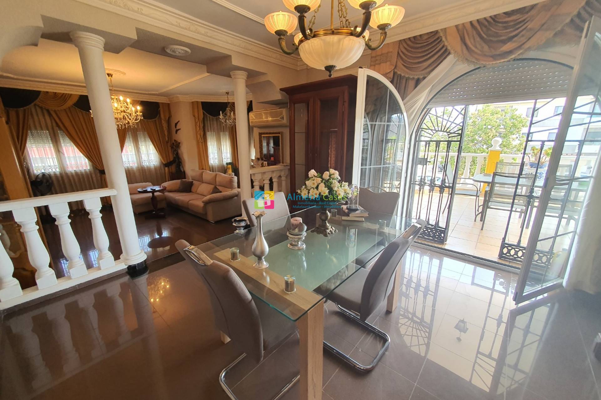 Cette propriété spectaculaire est située dans un très bon quartier de Huércal Overa, une grande ville commerciale où se trouve l'hôpital, à distance de marche de plusieurs magasins, supermarchés et autres commodités et à environ 20 minutes de la côte d'Almeria. En accédant à la maison, un beau hall dessert les autres pièces. Sur le côté droit se trouvent les escaliers menant au premier étage, en face se trouve le salon spacieux avec salle à manger sur la droite, celui-ci a accès à la terrasse avec porche et coin salon et sur la droite se trouve l'accès au couloir. Sur le côté droit du couloir il y a une chambre de bonne taille, à côté et sur le côté gauche une salle de douche et au bout du couloir la cuisine/salle à manger. Depuis les deux pièces, on accède à la terrasse et à la piscine qui bénéficie également d'un barbecue. La cuisine a également accès au sous-sol/garage. Au premier étage, sur le côté gauche, il y a une chambre avec une armoire intégrée, un accès à la terrasse et une salle de bain attenante. En continuant dans le couloir sur le côté droit, il y a une chambre double avec une armoire intégrée et un balcon, au bout du couloir une autre chambre double avec une armoire intégrée, une porte-fenêtre et un accès à la terrasse sur la gauche. À gauche dudit couloir, il y a une salle de bain et une autre chambre avec une armoire intégrée et une terrasse. Au deuxième étage, il y a un beau grenier qui peut être converti en une autre chambre. Il y a 3 pièces au sous-sol, la dernière et la plus grande est le garage et sur le côté gauche se trouve un grand local qui n'est pas inclus dans le prix de la propriété, il pourrait être utilisé pour ouvrir un commerce. La maison est entièrement pavée, dispose d'unités de climatisation dans toutes les pièces sauf la chambre à deux lits et il y a des radiateurs dans toutes les pièces. Si vous avez besoin de plus d'informations ou si vous souhaitez organiser une visite, contactez-nous.