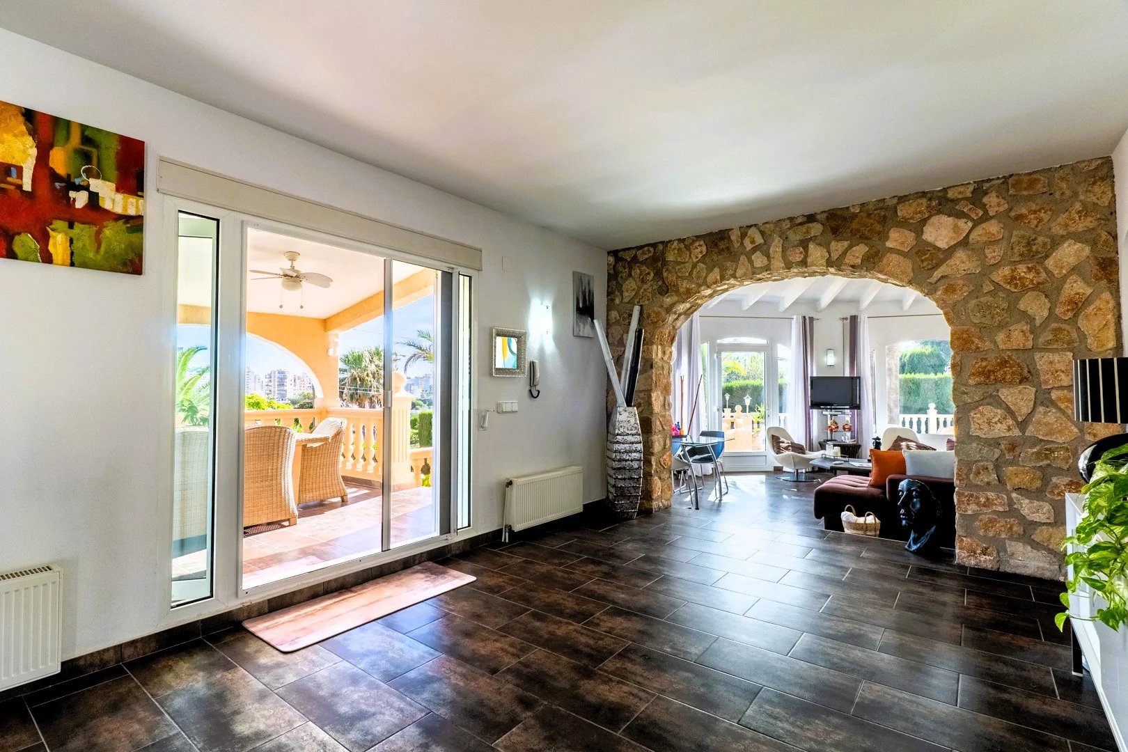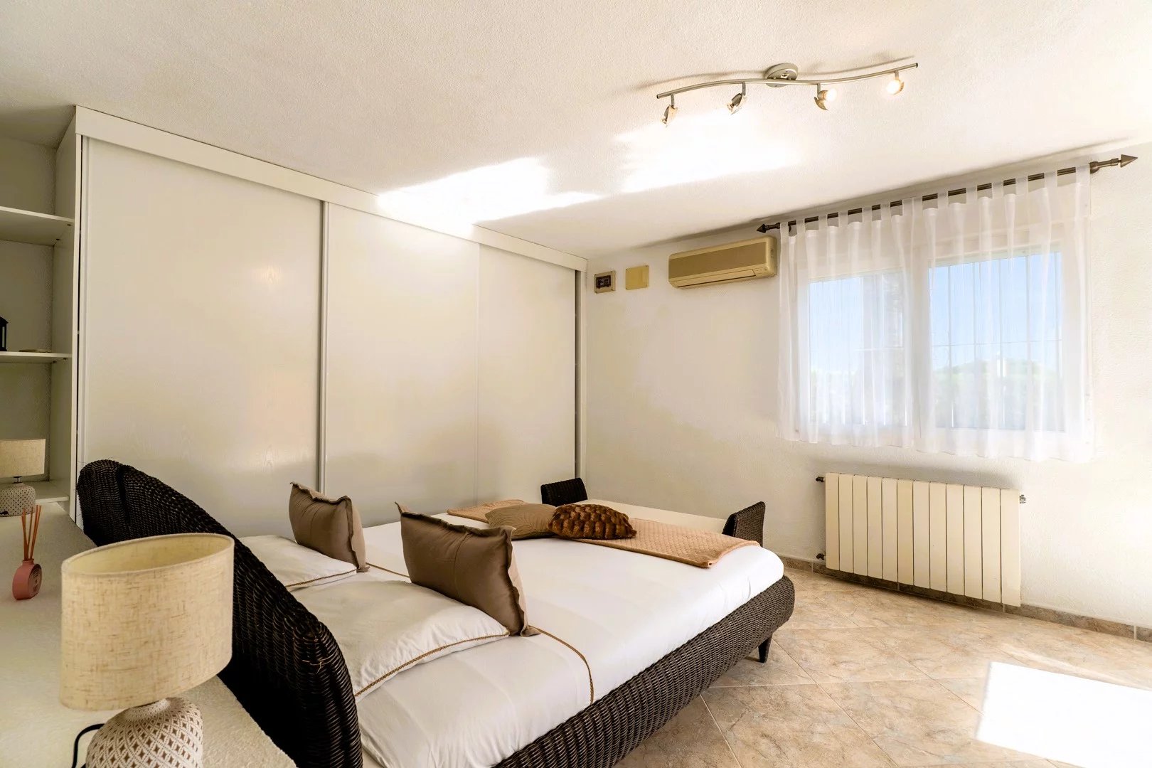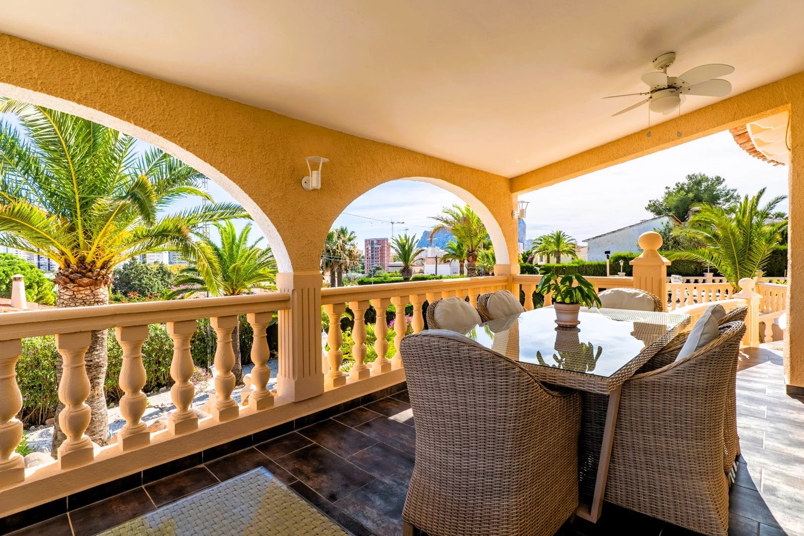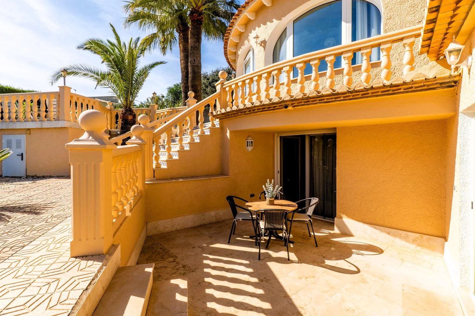 Villa méditerranéenne exclusive avec vue dégagée, proche de la plage et des commodités, à vendre à Calpe. Cette spacieuse villa est située dans une impasse extrêmement calme, à seulement 600 mètres de la célèbre plage de la Fossa et à quelques pas de nombreux bars, restaurants et supermarchés. Grâce à sa position dominante, vous profiterez d'une magnifique vue dégagée sur l'emblématique Peñón de Ifach et la nature environnante, en toute intimité. Agencement La propriété est divisée en deux niveaux de vie complètement distincts. Rez-de-chaussée : Un spacieux et lumineux séjour avec cuisine ouverte et accès direct à la piscine, une terrasse ensoleillée, une cuisine extérieure entièrement équipée et une très grande terrasse offrant une vue imprenable. Cet étage comprend également deux chambres confortables et deux salles de bains, dont une attenante. Étage invités : Un logement entièrement meublé avec deux chambres spacieuses, deux salles de bains, un séjour chaleureux et une cuisine ouverte. De là, vous avez un accès direct à une terrasse privée. Il y a également un débarras pratique et une buanderie séparée. Extérieur Le terrain est accessible par un portail électrique et offre des places de stationnement sur les deux niveaux, dont un abri voiture. Le jardin méditerranéen, agrémenté de palmiers matures et de plantes ornementales, est facile d'entretien. Points forts Endroit très calme et intimité totale À quelques minutes à pied de la plage et des commodités Deux espaces de vie entièrement indépendants Vue imprenable sur le Peñón et ses environs Vous recherchez une villa spacieuse alliant tranquillité, intimité et confort, avec un emplacement privilégié près de la mer ? Saisissez votre chance ! Contactez-nous dès aujourd'hui pour une visite !