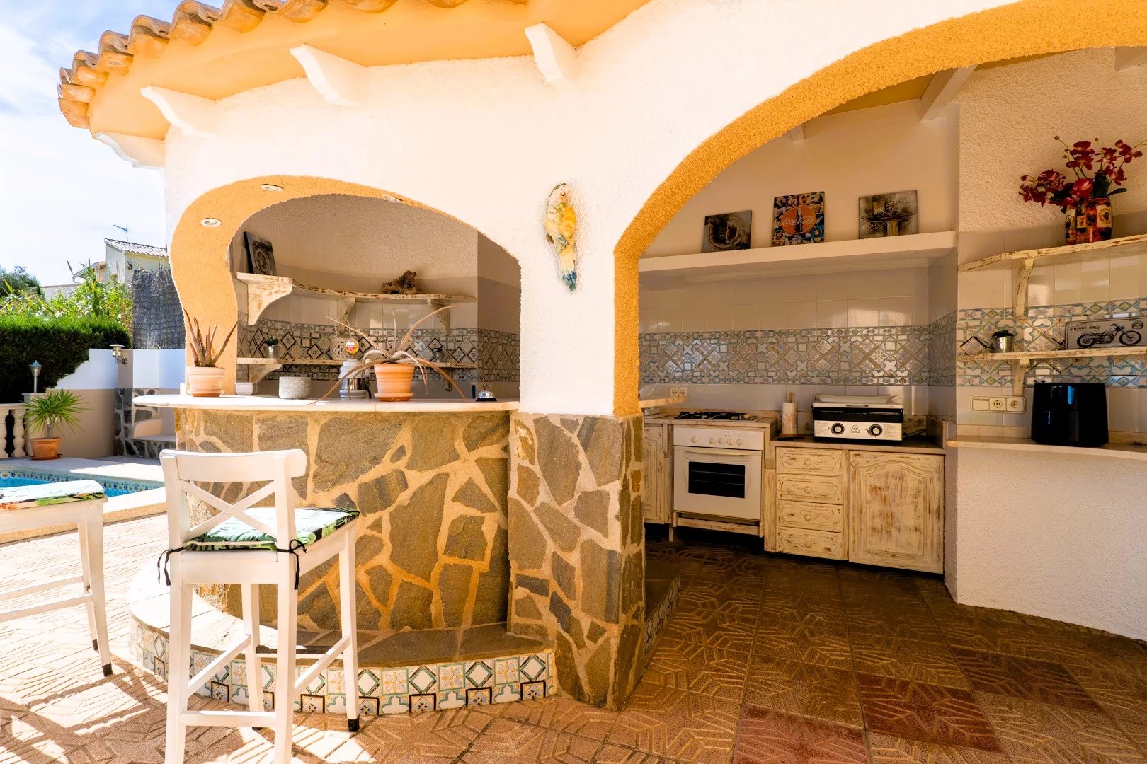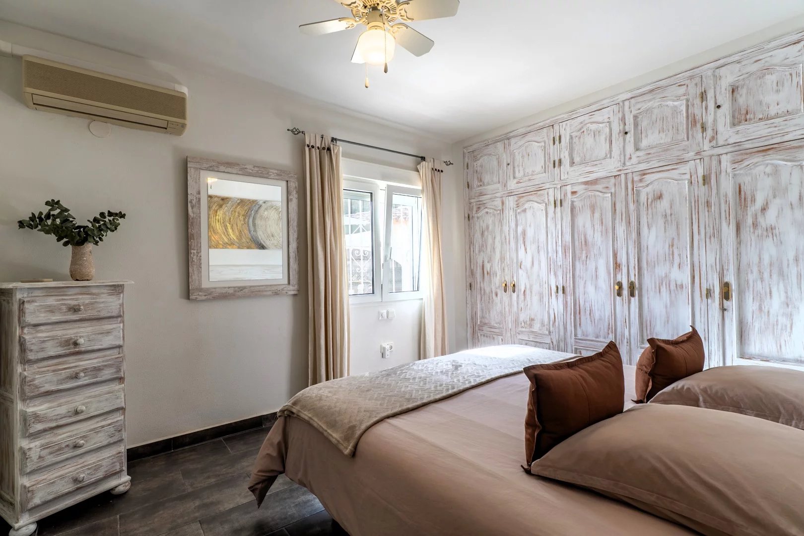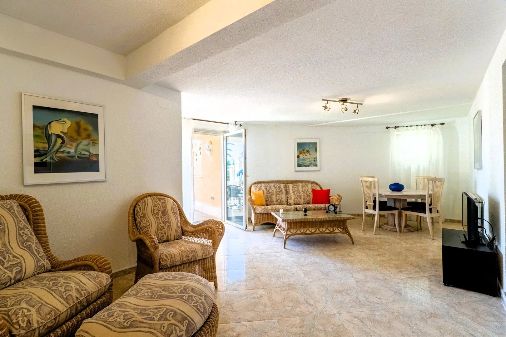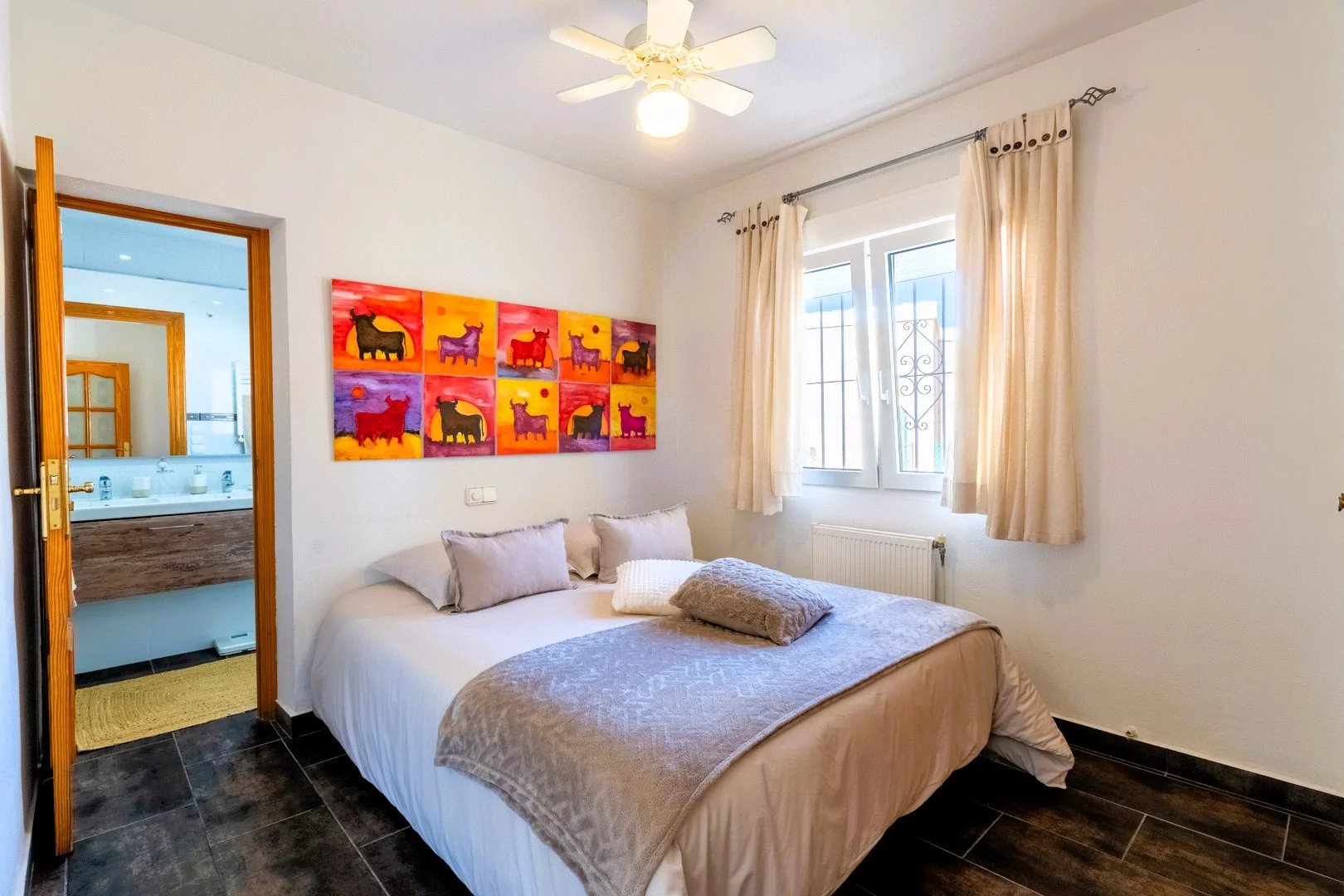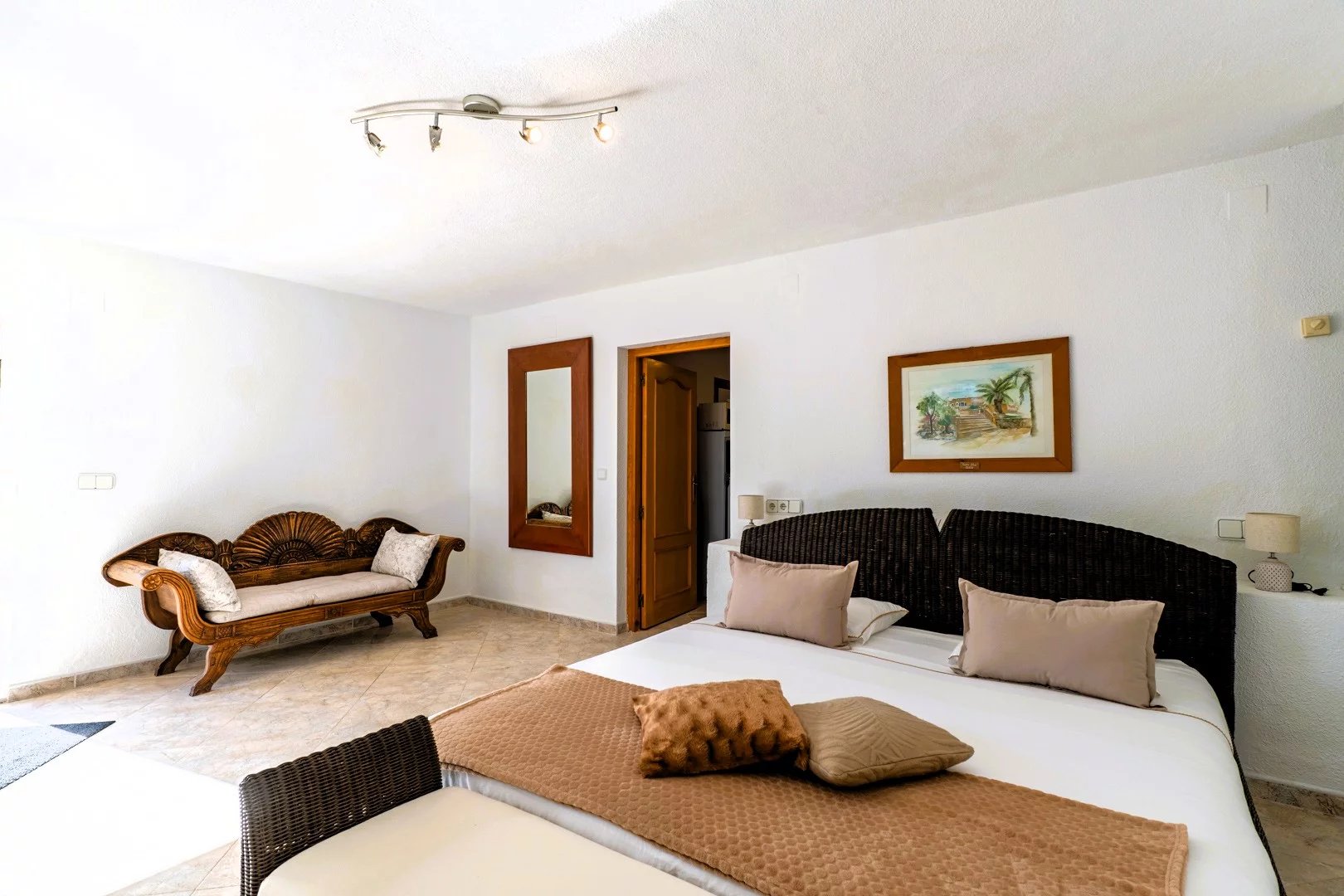 Villa méditerranéenne exclusive avec vue dégagée, proche de la plage et des commodités, à vendre à Calpe. Cette spacieuse villa est située dans une impasse extrêmement calme, à seulement 600 mètres de la célèbre plage de la Fossa et à quelques pas de nombreux bars, restaurants et supermarchés. Grâce à sa position dominante, vous profiterez d'une magnifique vue dégagée sur l'emblématique Peñón de Ifach et la nature environnante, en toute intimité. Agencement La propriété est divisée en deux niveaux de vie complètement distincts. Rez-de-chaussée : Un spacieux et lumineux séjour avec cuisine ouverte et accès direct à la piscine, une terrasse ensoleillée, une cuisine extérieure entièrement équipée et une très grande terrasse offrant une vue imprenable. Cet étage comprend également deux chambres confortables et deux salles de bains, dont une attenante. Étage invités : Un logement entièrement meublé avec deux chambres spacieuses, deux salles de bains, un séjour chaleureux et une cuisine ouverte. De là, vous avez un accès direct à une terrasse privée. Il y a également un débarras pratique et une buanderie séparée. Extérieur Le terrain est accessible par un portail électrique et offre des places de stationnement sur les deux niveaux, dont un abri voiture. Le jardin méditerranéen, agrémenté de palmiers matures et de plantes ornementales, est facile d'entretien. Points forts Endroit très calme et intimité totale À quelques minutes à pied de la plage et des commodités Deux espaces de vie entièrement indépendants Vue imprenable sur le Peñón et ses environs Vous recherchez une villa spacieuse alliant tranquillité, intimité et confort, avec un emplacement privilégié près de la mer ? Saisissez votre chance ! Contactez-nous dès aujourd'hui pour une visite !