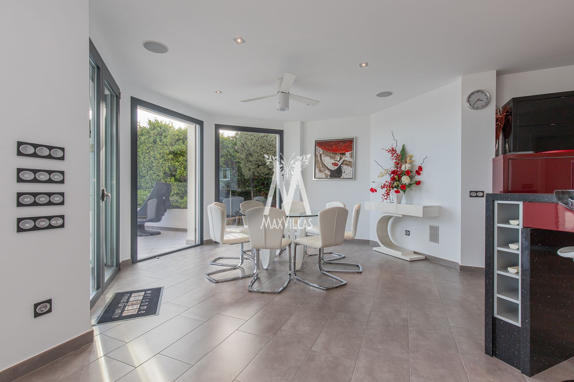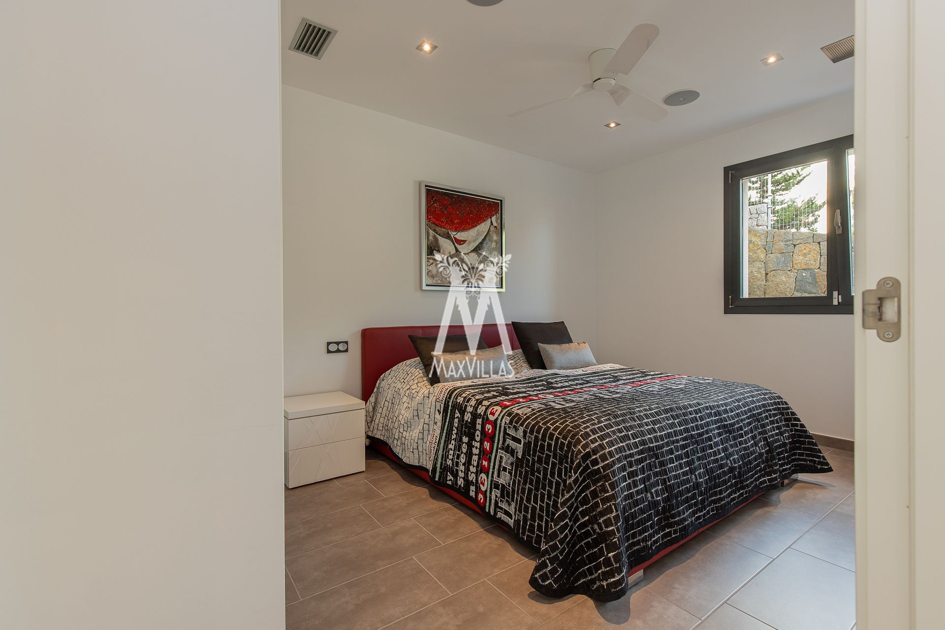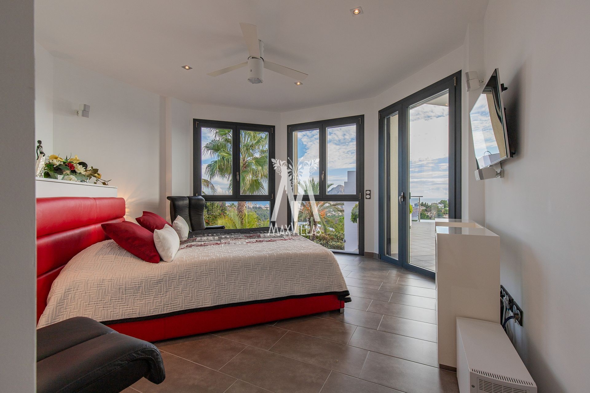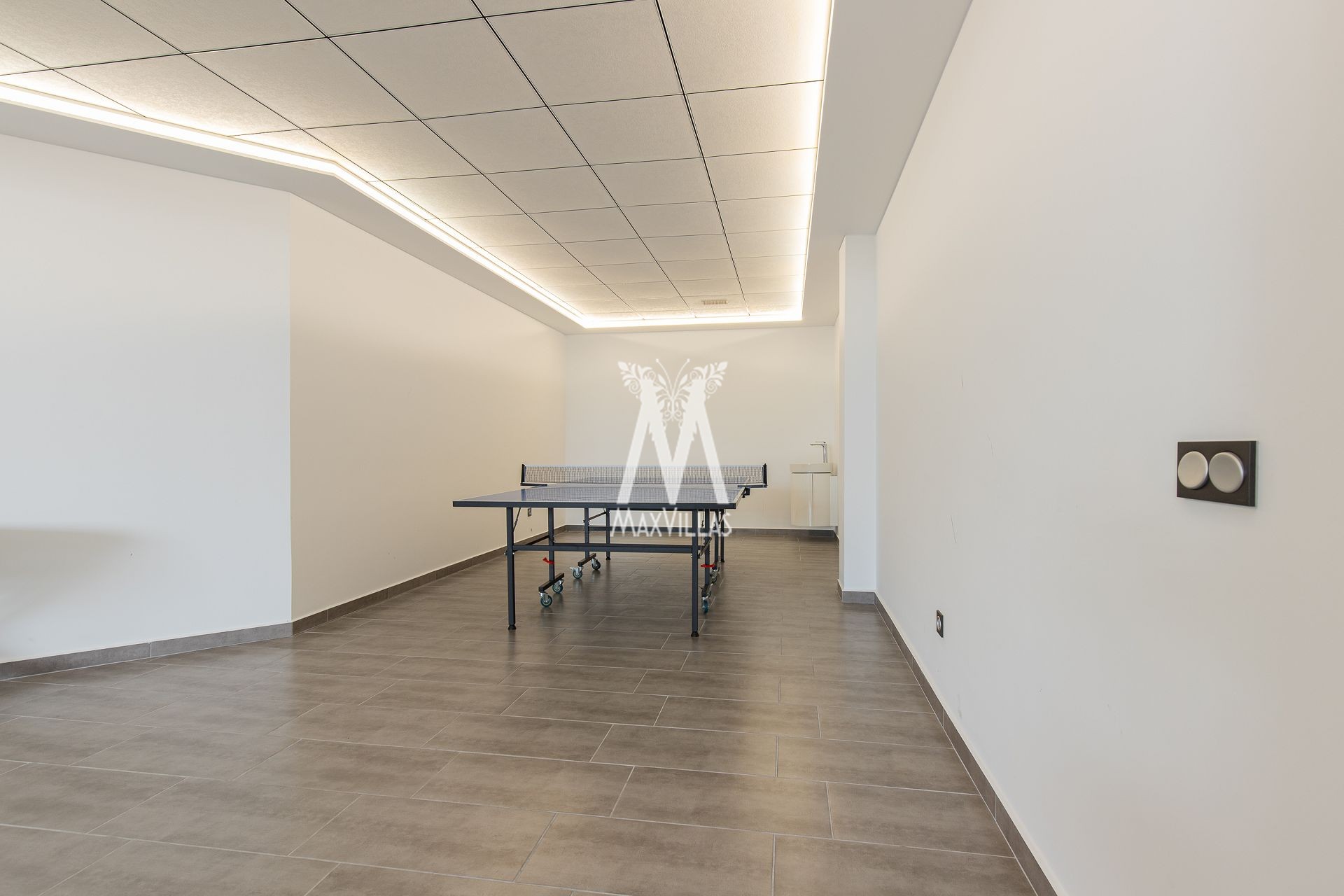 Découvrez cette propriété exclusive dans l’un des quartiers les plus recherchés de Calpe, alliant confort, élégance et tranquillité absolue. Avec des vues imprenables sur la mer Méditerranée et le Peñón de Ifach, cette villa conjugue luxe et durabilité jusque dans les moindres détails. Disposition et espaces : Rez-de-chaussée : Grand salon-salle à manger avec accès à une terrasse panoramique, cuisine entièrement équipée avec électroménagers haut de gamme (MIELE), et une spectaculaire piscine à débordement au sel avec couverture électrique, douche extérieure, espace barbecue et pergola. Ce niveau comprend également deux chambres (dont une en suite avec dressing) avec accès à la terrasse, ainsi qu’un garage fermé. Étage inférieur : Deux chambres en suite avec salles de bains privées, une charmante cave à vin de style rustique, un grand garage pouvant accueillir jusqu’à six véhicules et une pièce polyvalente idéale pour une salle de sport, un home cinéma ou une salle de jeux. Étage supérieur : Solarium équipé d’un système de panneaux solaires avec une capacité journalière de 50 kWh, garantissant efficacité et durabilité dans toute la maison. Extérieur : Jardins nécessitant peu d’entretien avec arrosage automatique, pelouse naturelle et arbres fruitiers pour apporter fraîcheur et verdure. Le terrain est délimité par des murs en béton habillés de pierre naturelle grise. Matériaux et équipements de haute qualité : La villa est construite en briques d’argile avec isolation extérieure, garantissant une haute efficacité énergétique et un confort thermique optimal. Chauffage au sol alimenté par panneaux solaires, climatisation, systèmes audio (BOSE) et TV dans toutes les pièces. Emplacement privilégié : À seulement 2,5 km du centre de Calpe et à 3 km des plages, cette villa bénéficie d’un emplacement stratégique offrant intimité, calme et proximité des commodités. Une opportunité unique : Vivez dans une villa qui a tout : luxe, confort et intimité totale. Contactez-nous pour plus d’informations ou pour organiser une visite privée !