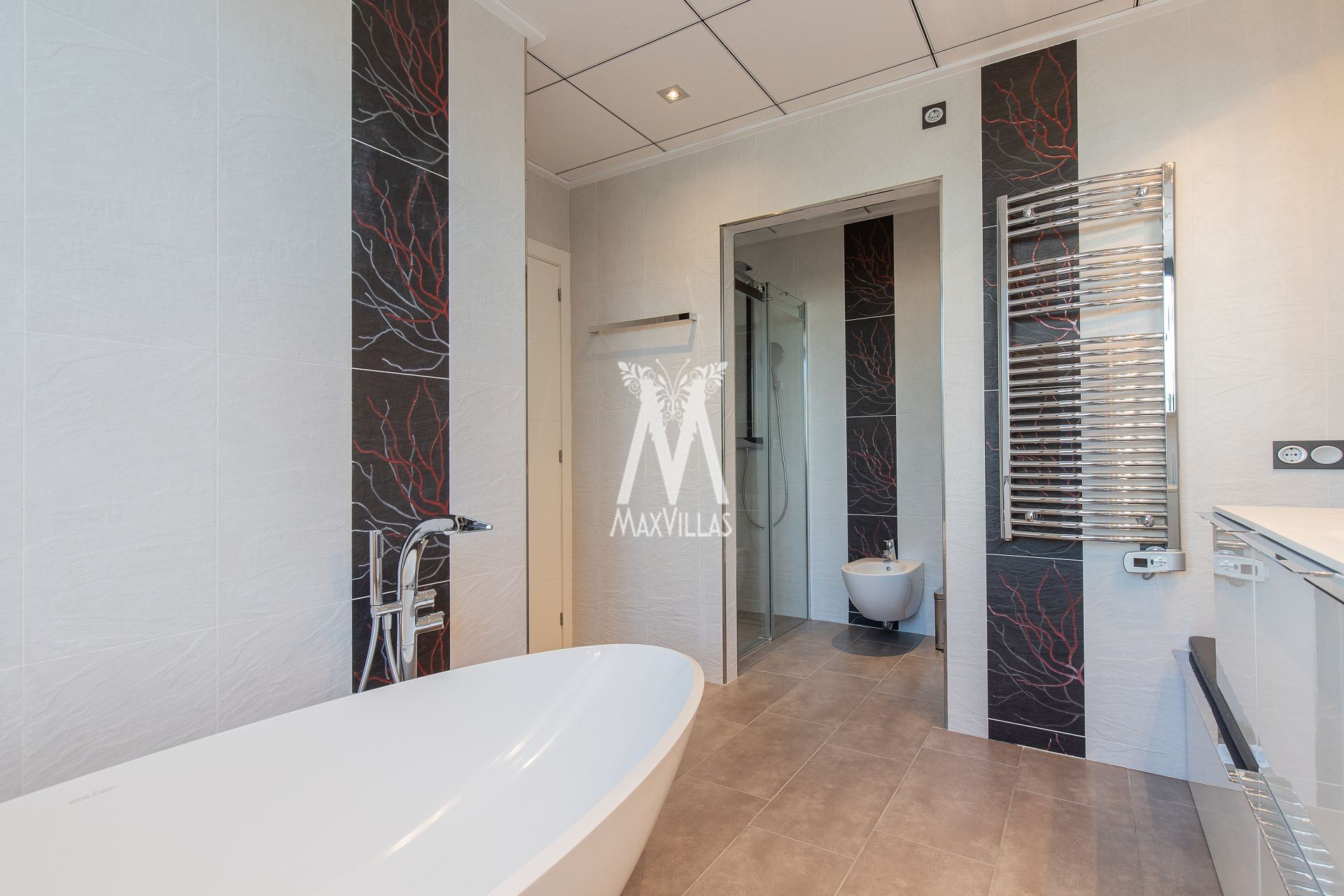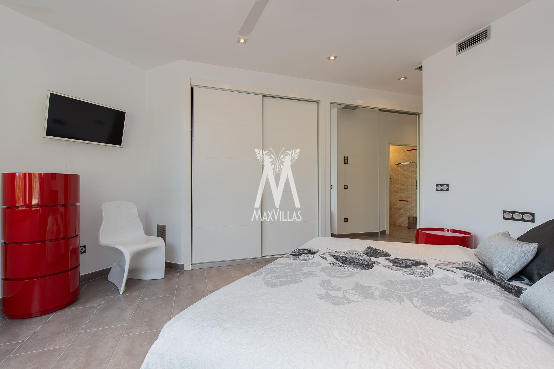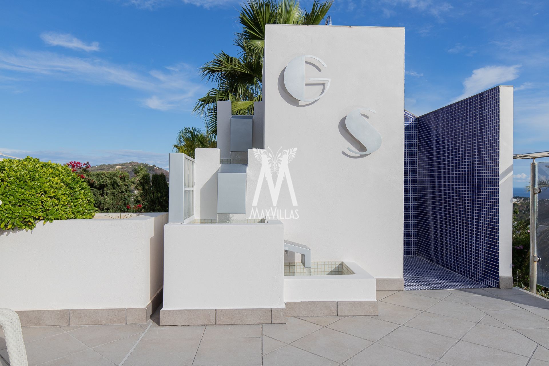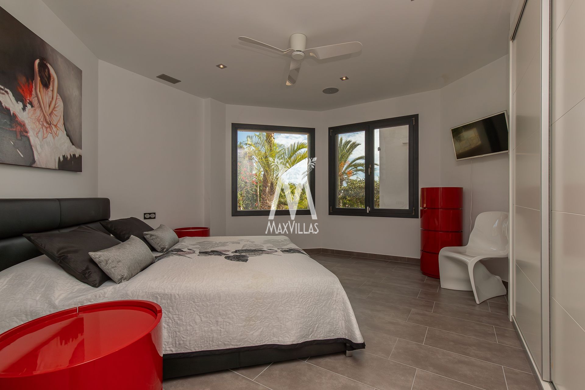 Découvrez cette propriété exclusive dans l’un des quartiers les plus recherchés de Calpe, alliant confort, élégance et tranquillité absolue. Avec des vues imprenables sur la mer Méditerranée et le Peñón de Ifach, cette villa conjugue luxe et durabilité jusque dans les moindres détails. Disposition et espaces : Rez-de-chaussée : Grand salon-salle à manger avec accès à une terrasse panoramique, cuisine entièrement équipée avec électroménagers haut de gamme (MIELE), et une spectaculaire piscine à débordement au sel avec couverture électrique, douche extérieure, espace barbecue et pergola. Ce niveau comprend également deux chambres (dont une en suite avec dressing) avec accès à la terrasse, ainsi qu’un garage fermé. Étage inférieur : Deux chambres en suite avec salles de bains privées, une charmante cave à vin de style rustique, un grand garage pouvant accueillir jusqu’à six véhicules et une pièce polyvalente idéale pour une salle de sport, un home cinéma ou une salle de jeux. Étage supérieur : Solarium équipé d’un système de panneaux solaires avec une capacité journalière de 50 kWh, garantissant efficacité et durabilité dans toute la maison. Extérieur : Jardins nécessitant peu d’entretien avec arrosage automatique, pelouse naturelle et arbres fruitiers pour apporter fraîcheur et verdure. Le terrain est délimité par des murs en béton habillés de pierre naturelle grise. Matériaux et équipements de haute qualité : La villa est construite en briques d’argile avec isolation extérieure, garantissant une haute efficacité énergétique et un confort thermique optimal. Chauffage au sol alimenté par panneaux solaires, climatisation, systèmes audio (BOSE) et TV dans toutes les pièces. Emplacement privilégié : À seulement 2,5 km du centre de Calpe et à 3 km des plages, cette villa bénéficie d’un emplacement stratégique offrant intimité, calme et proximité des commodités. Une opportunité unique : Vivez dans une villa qui a tout : luxe, confort et intimité totale. Contactez-nous pour plus d’informations ou pour organiser une visite privée !