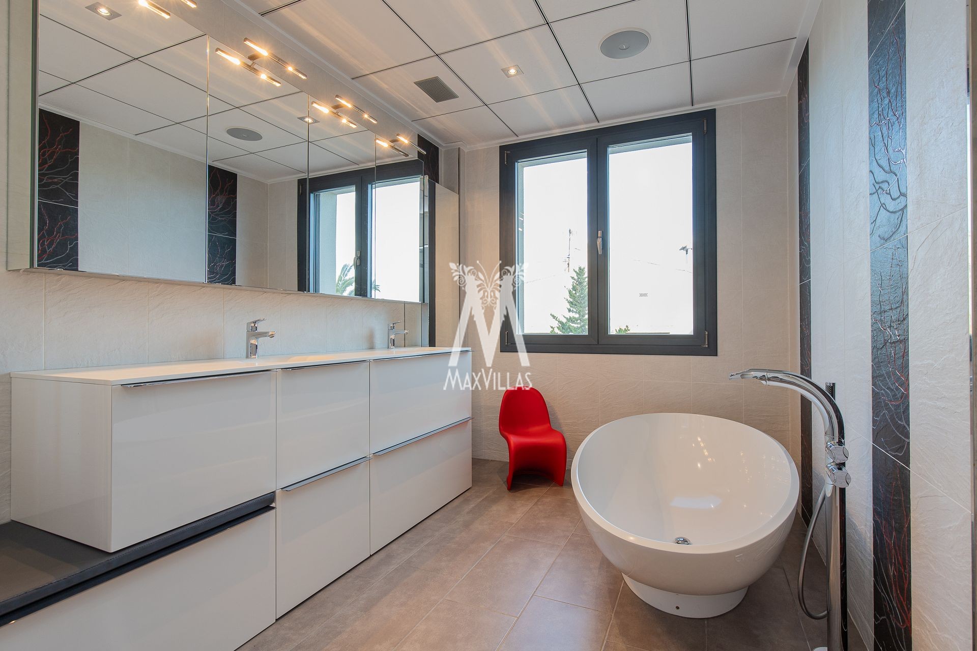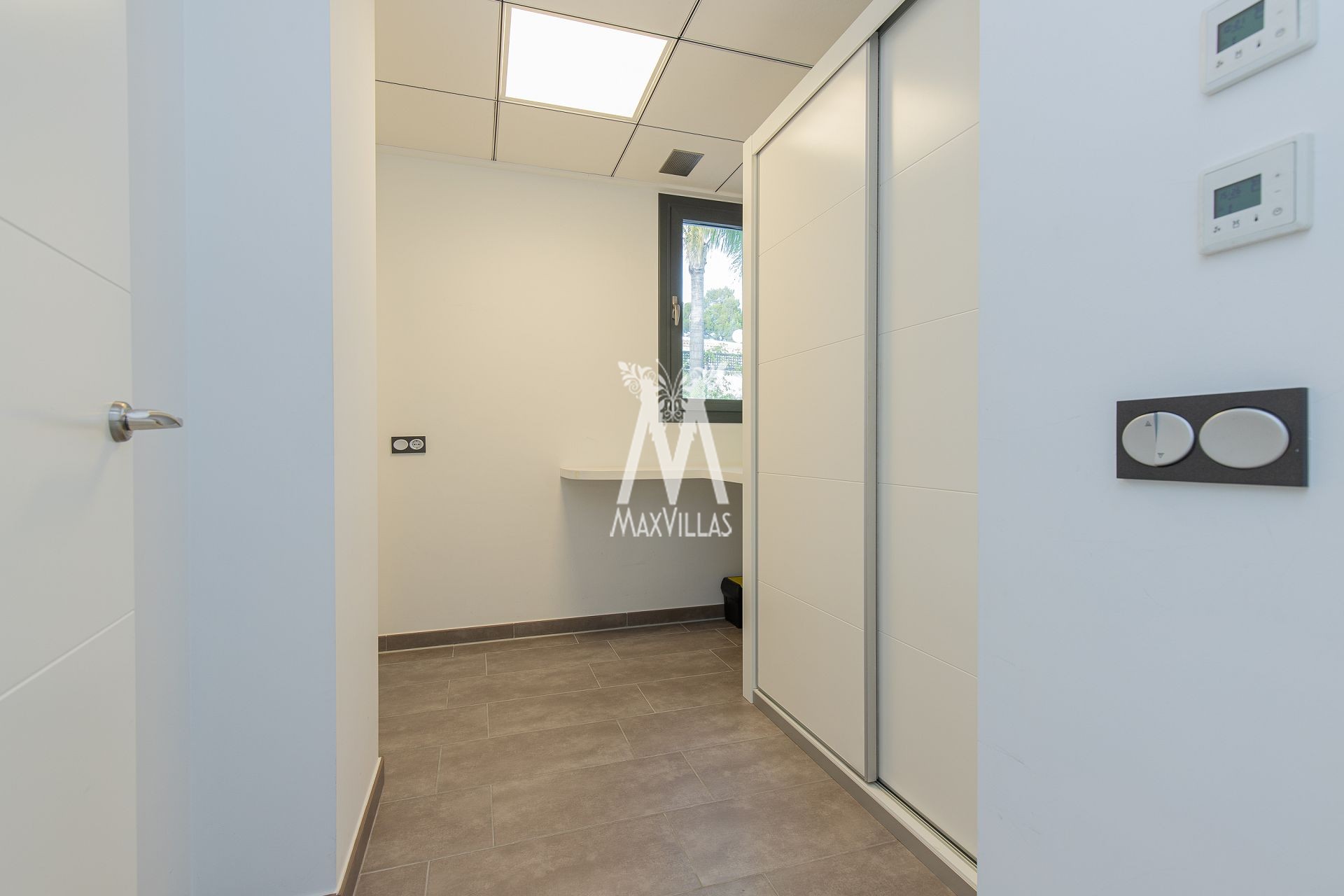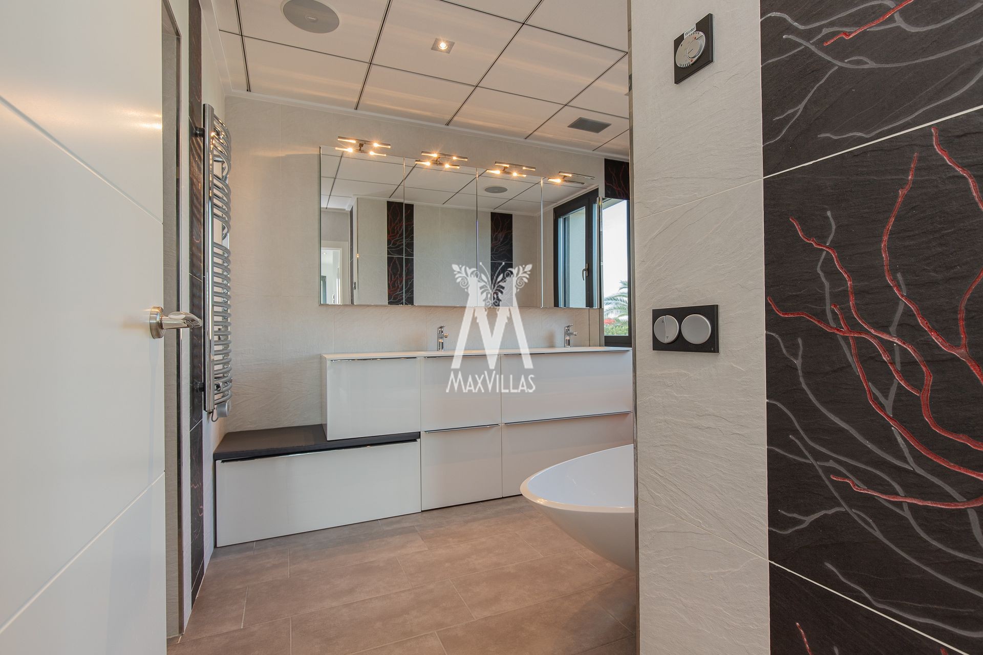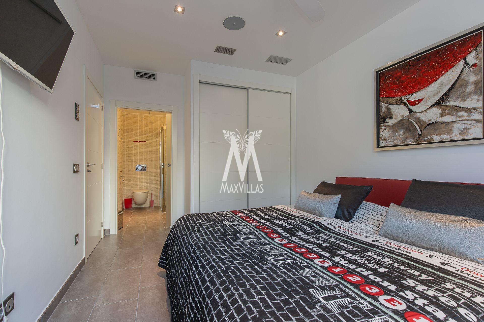 Découvrez cette propriété exclusive dans l’un des quartiers les plus recherchés de Calpe, alliant confort, élégance et tranquillité absolue. Avec des vues imprenables sur la mer Méditerranée et le Peñón de Ifach, cette villa conjugue luxe et durabilité jusque dans les moindres détails. Disposition et espaces : Rez-de-chaussée : Grand salon-salle à manger avec accès à une terrasse panoramique, cuisine entièrement équipée avec électroménagers haut de gamme (MIELE), et une spectaculaire piscine à débordement au sel avec couverture électrique, douche extérieure, espace barbecue et pergola. Ce niveau comprend également deux chambres (dont une en suite avec dressing) avec accès à la terrasse, ainsi qu’un garage fermé. Étage inférieur : Deux chambres en suite avec salles de bains privées, une charmante cave à vin de style rustique, un grand garage pouvant accueillir jusqu’à six véhicules et une pièce polyvalente idéale pour une salle de sport, un home cinéma ou une salle de jeux. Étage supérieur : Solarium équipé d’un système de panneaux solaires avec une capacité journalière de 50 kWh, garantissant efficacité et durabilité dans toute la maison. Extérieur : Jardins nécessitant peu d’entretien avec arrosage automatique, pelouse naturelle et arbres fruitiers pour apporter fraîcheur et verdure. Le terrain est délimité par des murs en béton habillés de pierre naturelle grise. Matériaux et équipements de haute qualité : La villa est construite en briques d’argile avec isolation extérieure, garantissant une haute efficacité énergétique et un confort thermique optimal. Chauffage au sol alimenté par panneaux solaires, climatisation, systèmes audio (BOSE) et TV dans toutes les pièces. Emplacement privilégié : À seulement 2,5 km du centre de Calpe et à 3 km des plages, cette villa bénéficie d’un emplacement stratégique offrant intimité, calme et proximité des commodités. Une opportunité unique : Vivez dans une villa qui a tout : luxe, confort et intimité totale. Contactez-nous pour plus d’informations ou pour organiser une visite privée !