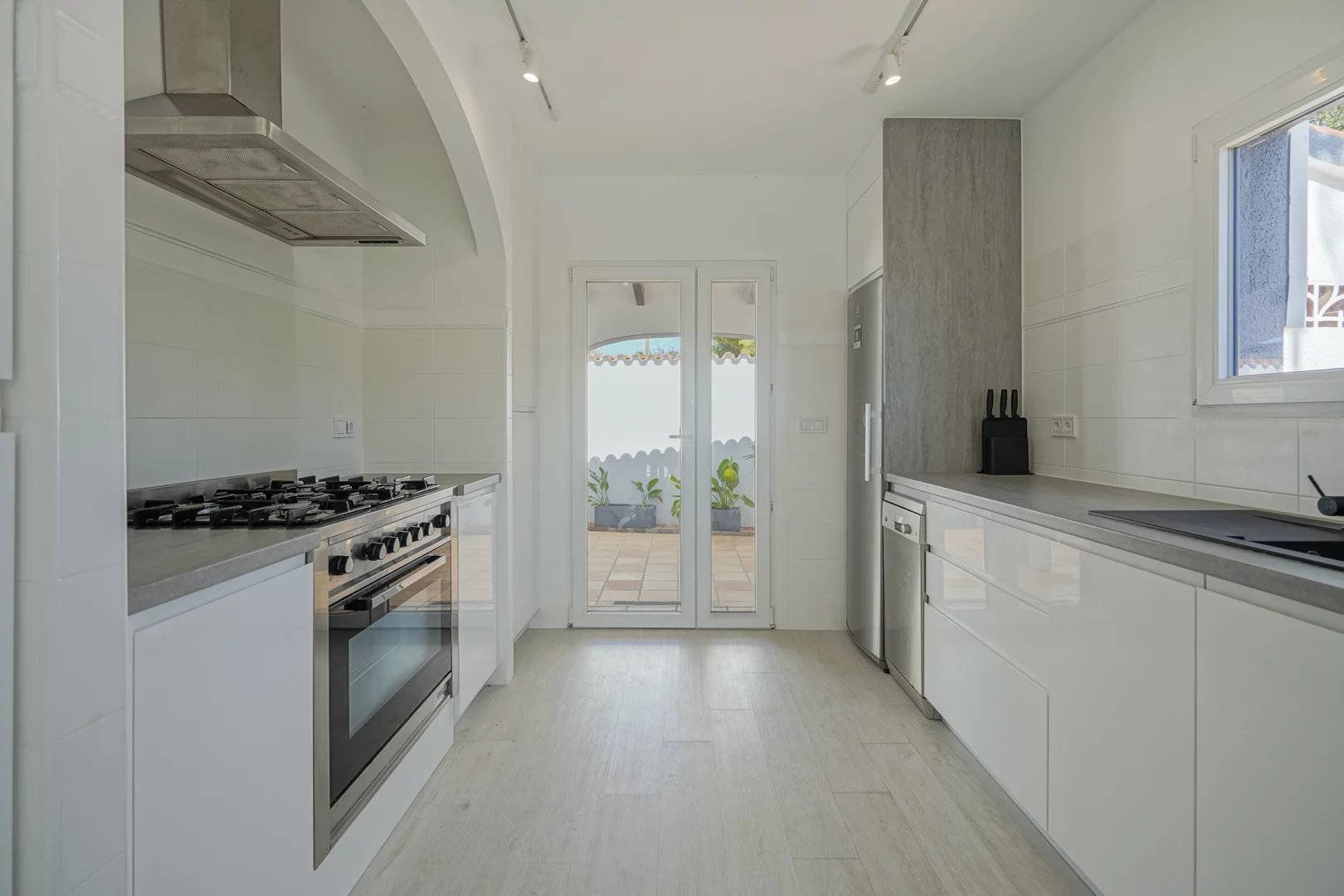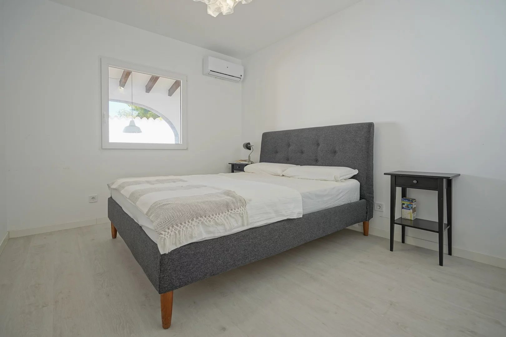 Villa rénovée de 5 chambres à vendre à 500 m de la plage et du centre de Calpe Villa rénovée avec maison d'amis à 500 m de la plage Cette villa récemment rénovée de 5 chambres est située dans une urbanisation tranquille, à seulement 500 mètres de la plage de sable de Calpe et à 10 minutes à pied du centre-ville. L'étage supérieur comprend un salon et une salle à manger modernes avec cheminée, une cuisine entièrement équipée, deux chambres spacieuses, un dressing et une salle de bains luxueuse avec double douche et baignoire. Le salon donne accès à une grande terrasse orientée sud offrant une vue magnifique sur Calpe et le Peñon de Ifach. La cuisine s'ouvre sur une terrasse couverte, idéale pour dîner à l'extérieur toute l'année. Le rez-de-chaussée constitue un logement d'amis totalement indépendant avec un salon, une cuisine ouverte, trois chambres et une salle de bains. Parfait pour la famille, les amis ou comme possibilité de location. Le logement d'amis est relié à la maison par l'intérieur et accessible par une entrée privée. Deux des trois chambres donnent directement accès à la terrasse près de la piscine. La villa dispose également d'un garage, actuellement aménagé en cuisine supplémentaire et espace de rangement. La maison est également équipée de la climatisation, de double vitrage (Climalit), d'un chauffe-eau solaire et d'un sauna. Dans le magnifique jardin méditerranéen avec ses palmiers et ses oliviers, vous trouverez plusieurs terrasses, des endroits ensoleillés et ombragés, ainsi qu'une grande piscine avec un espace pour s'allonger. Grâce à son orientation sud, vous pouvez profiter du soleil toute l'année. La villa est vendue meublée et prête à emménager, tant pour y vivre que pour la louer (une licence de location doit être demandée). L'emplacement est idéal, que ce soit comme investissement, résidence de vacances ou résidence permanente. Demandez dès maintenant votre visite !