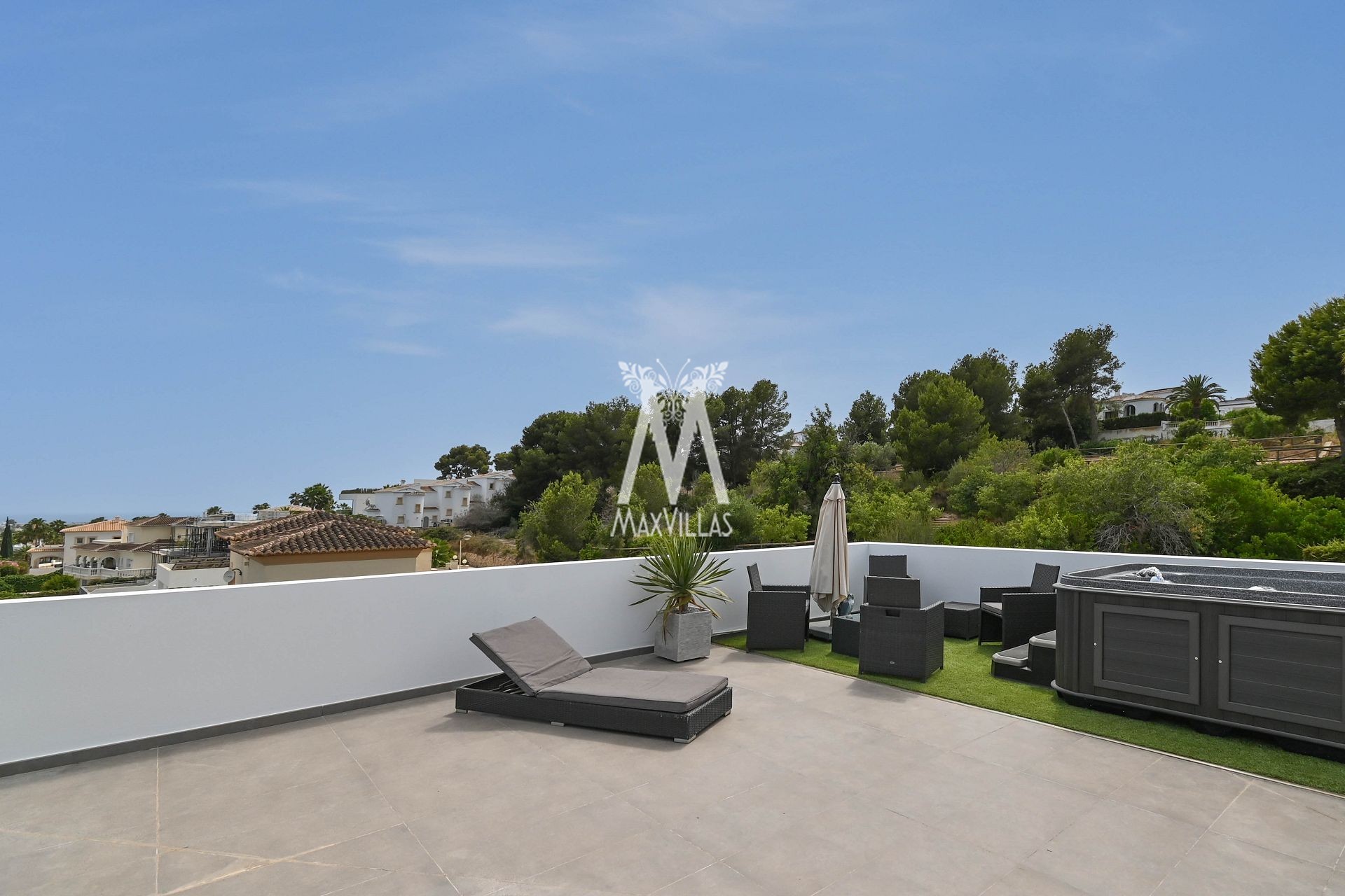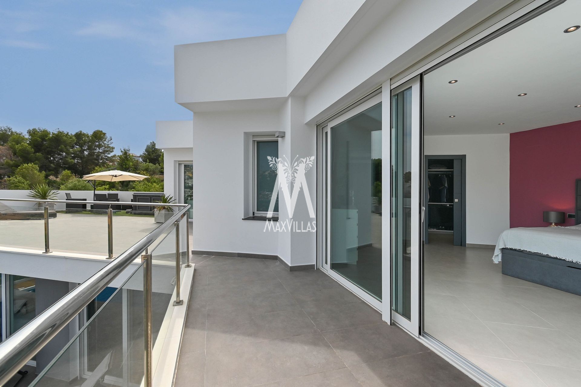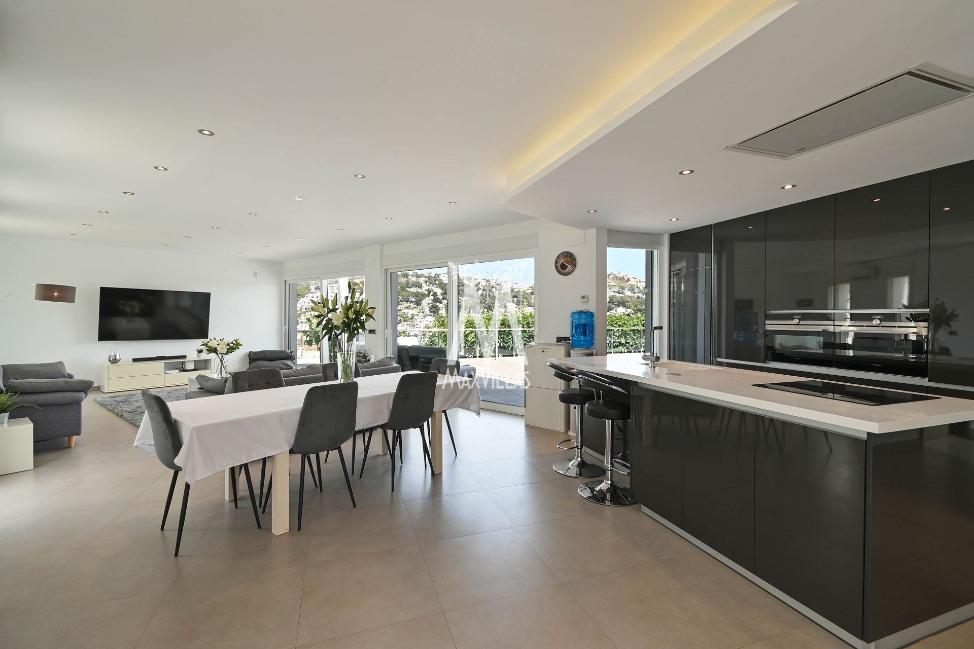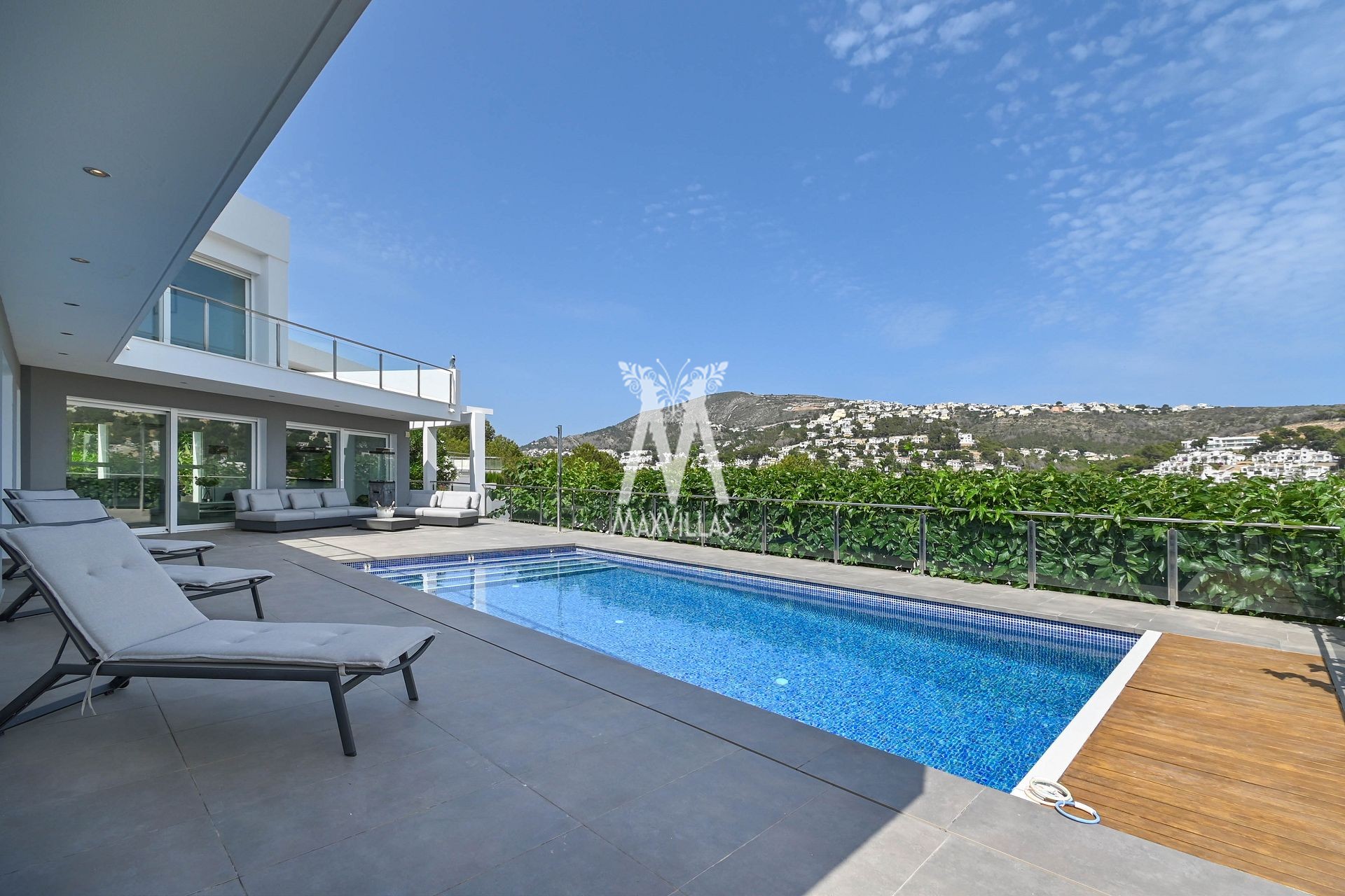 Nouvelle construction impressionnante à vendre à Jávea La propriété offre une vue dégagée sur les collines verdoyantes jusqu’à la mer. Par temps clair, vous pouvez admirer la mer Méditerranée jusqu'à Ibiza. Une architecture...