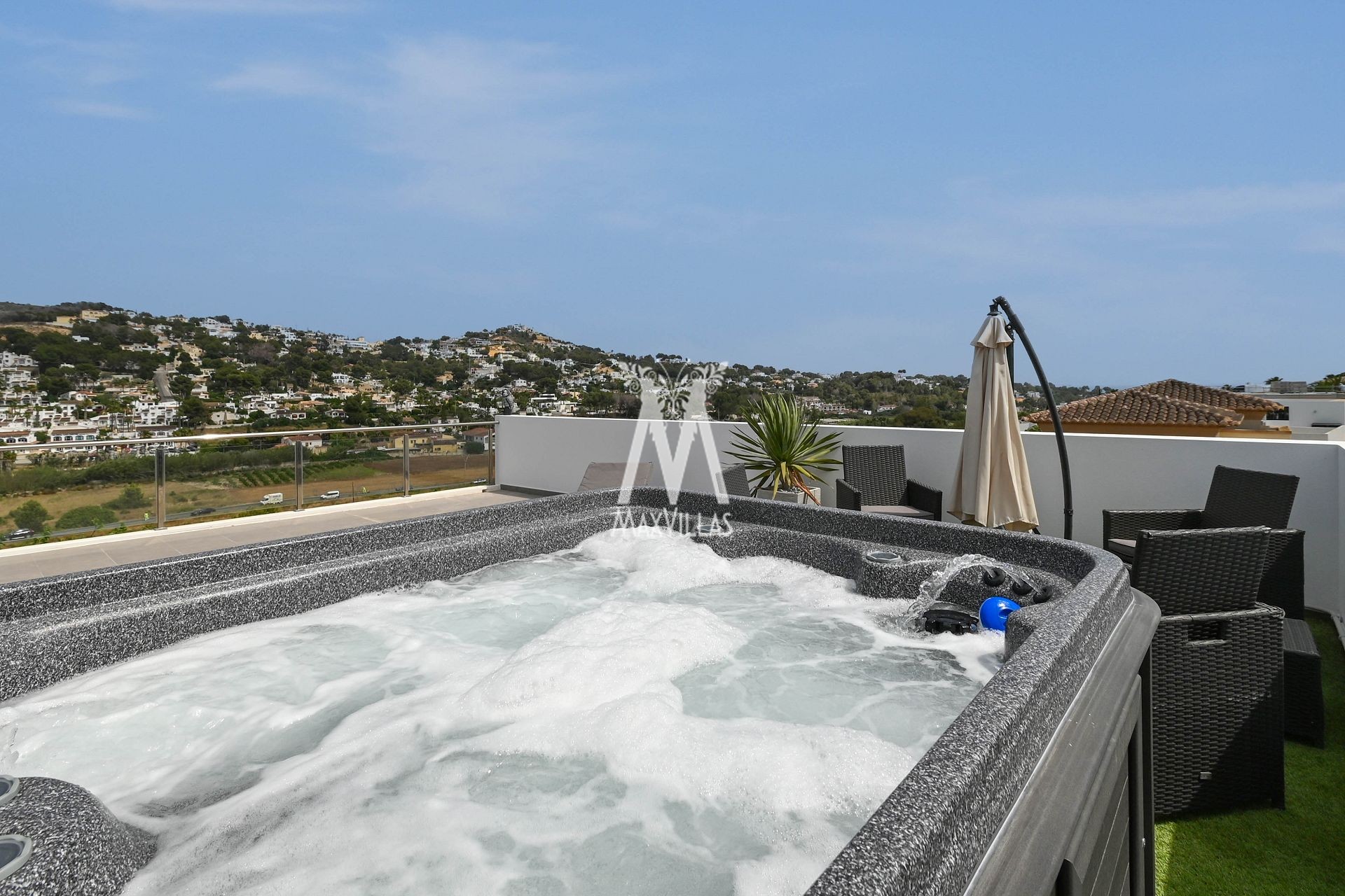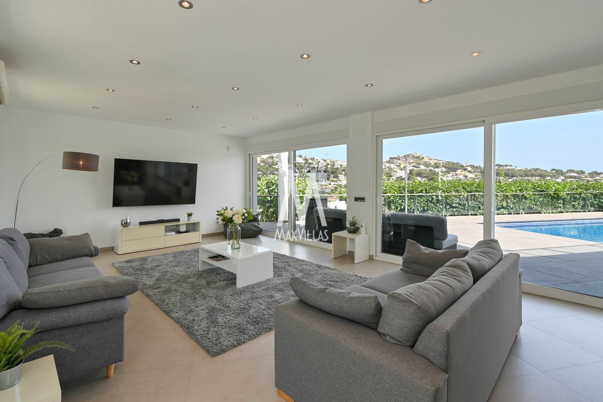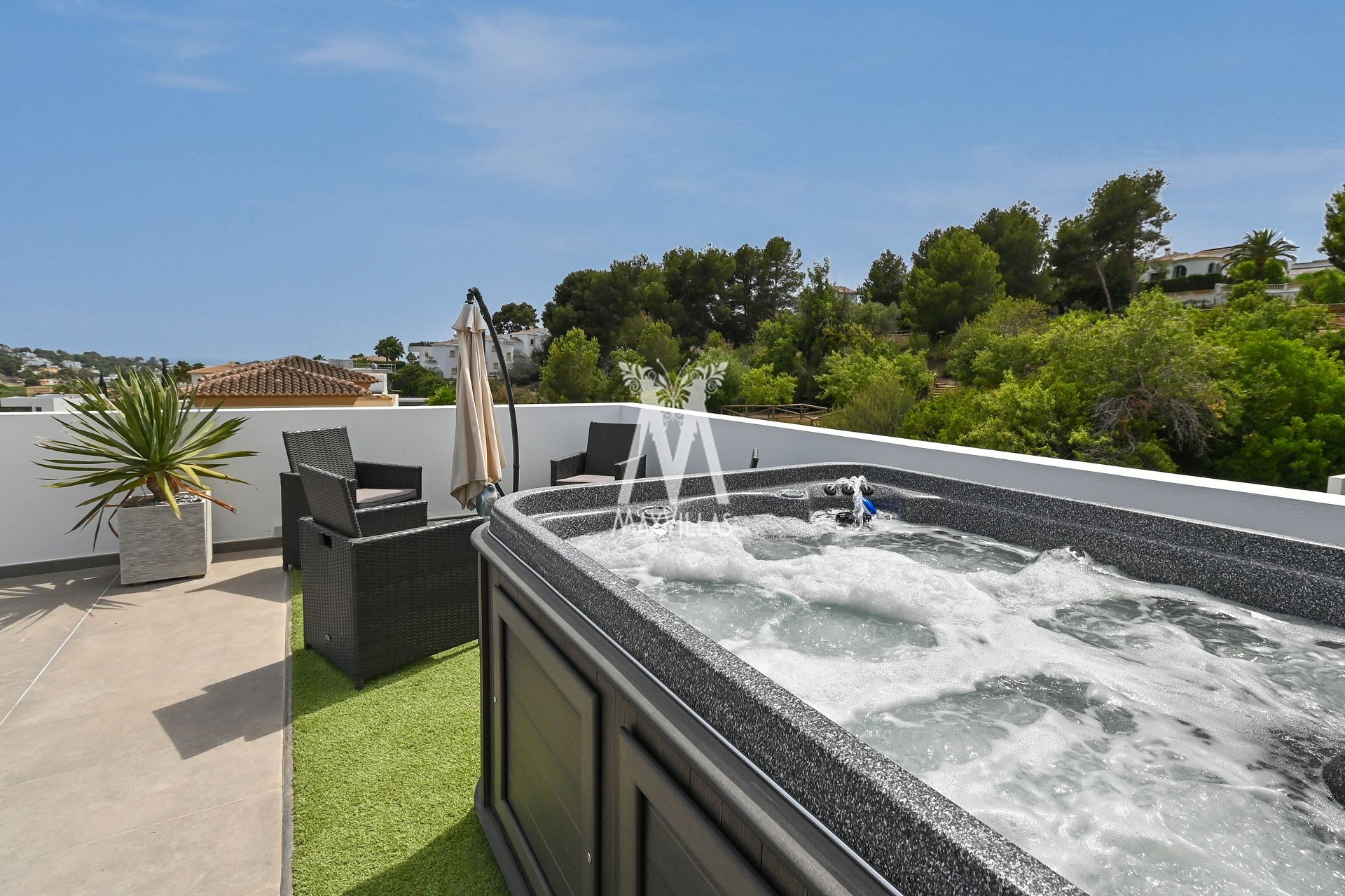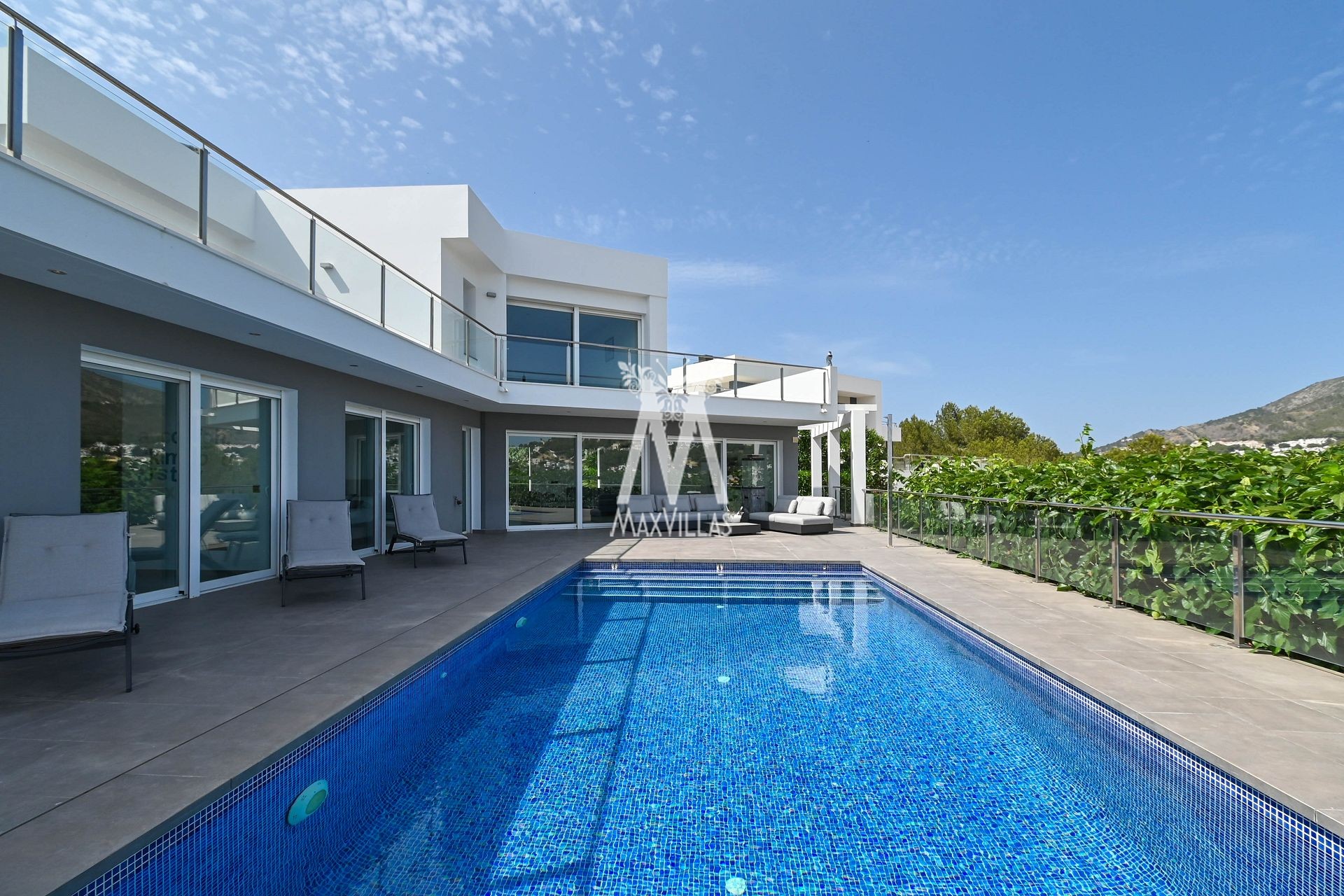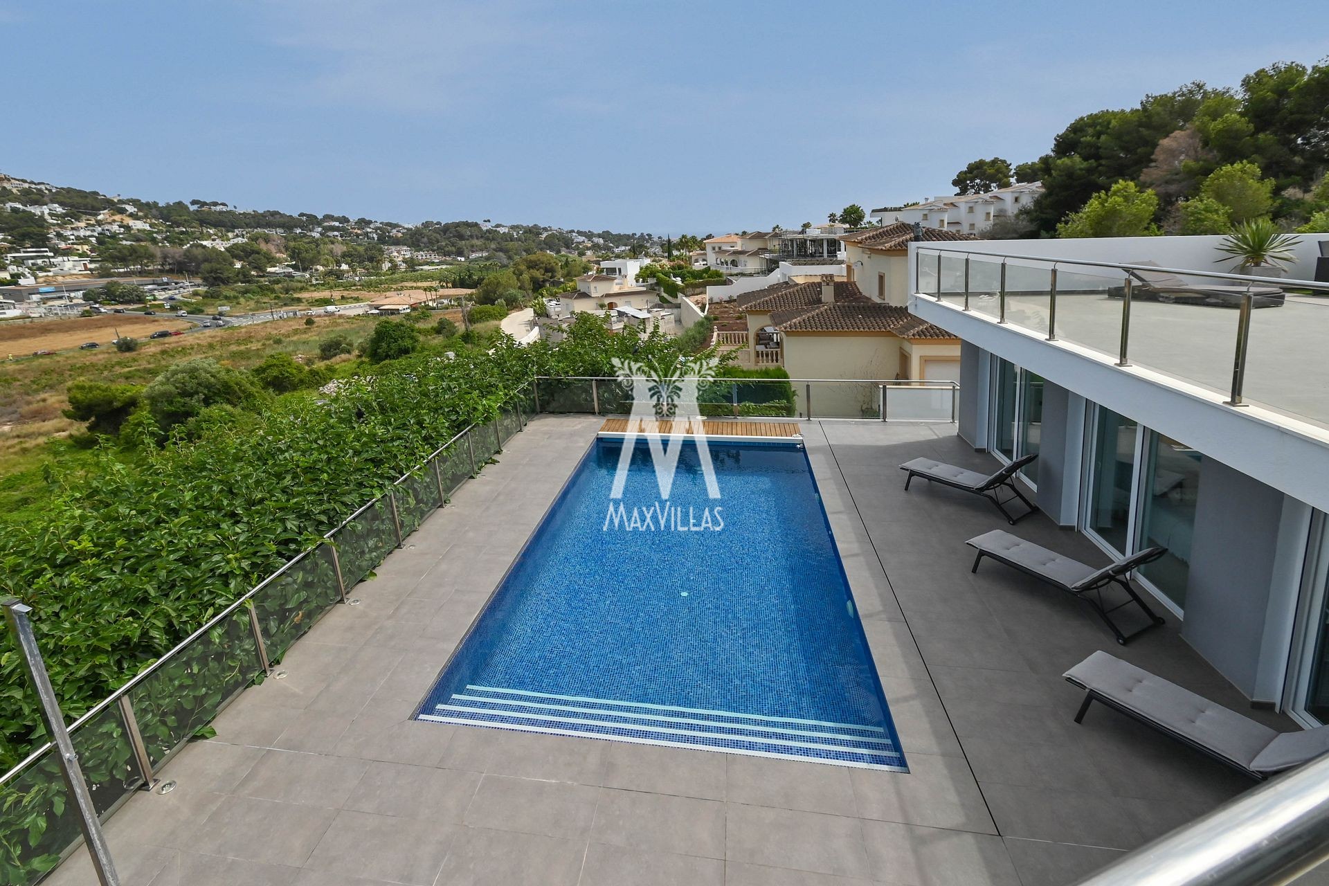 Nouvelle construction impressionnante à vendre à Jávea La propriété offre une vue dégagée sur les collines verdoyantes jusqu’à la mer. Par temps clair, vous pouvez admirer la mer Méditerranée jusqu'à Ibiza. Une architecture...