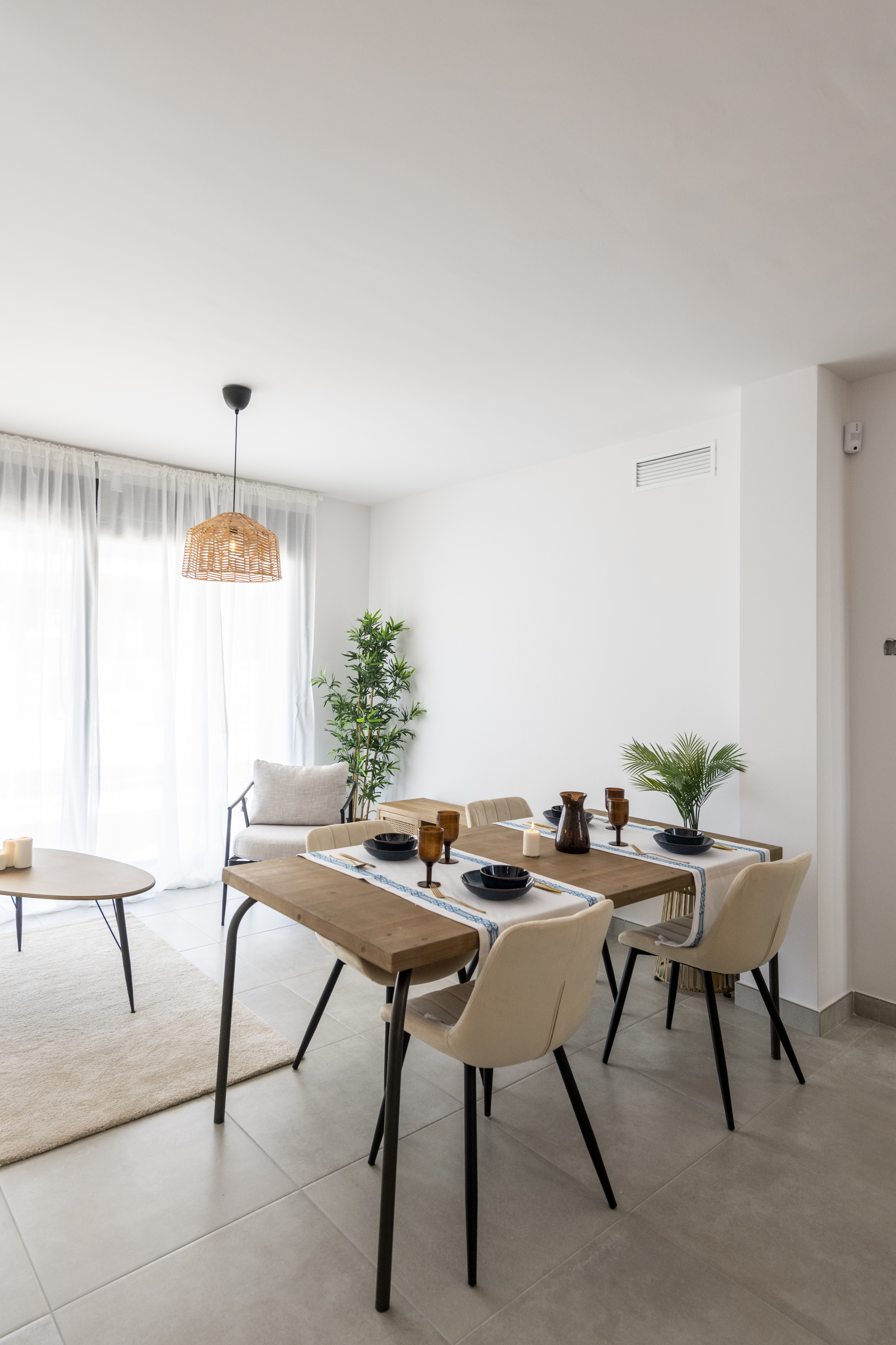 Découvrez l'opportunité de vivre dans un espace conçu pour votre confort et votre style de vie à Orihuela Costa. Nous présentons une offre exclusive d'appartements de deux et trois chambres, où l'espace et la luminosité se combinent pour créer une maison parfaite. Caractéristiques mises en avant : Design spacieux et lumineux : Chaque appartement a été conçu dans le but de maximiser l'espace et l'entrée de lumière naturelle, offrant des environnements spacieux et accueillants qui vous feront sentir comme chez vous. Proximité des terrains de golf : Pour les amateurs de golf, l'emplacement de ces appartements est idéal, avec des terrains de golf à proximité offrant l'opportunité de profiter de ce sport passionnant à quelques minutes de chez vous. Piscine commune : Rafraîchissez-vous et socialisez à la piscine commune, un endroit parfait pour vous détendre et profiter de moments agréables avec vos amis et votre famille. Garage communautaire : La commodité de disposer d'un garage communautaire offre sécurité et tranquillité d'esprit pour vos véhicules, assurant un espace pour chaque résident. Options de rez-de-chaussée et premier étage : Choisissez entre des appartements au rez-de-chaussée avec un accès direct à des espaces extérieurs ou des unités au premier étage avec des terrasses offrant des vues panoramiques. Nous adaptons l'espace à vos préférences. Cuisine meublée avec électroménagers : La cuisine, cœur de la maison, est entièrement meublée avec des électroménagers modernes, offrant fonctionnalité et style dans chaque détail. Menuiserie intérieure laquée en blanc : Les intérieurs ont été conçus avec une touche élégante, présentant une menuiserie intérieure laquée en blanc qui ajoute de la luminosité et une esthétique moderne. Pré-installation de la climatisation : Le confort climatique est garanti avec la pré-installation de la climatisation, vous permettant de personnaliser l'ambiance de votre maison selon vos préférences. Ces appartements représentent une opportunité unique de profiter de la vie dans la magnifique Orihuela Costa. Avec des équipements modernes et des détails soignés, chaque espace est conçu pour offrir un style de vie confortable et contemporain. Faites de ces appartements votre nouveau chez-vous sur la Costa Blanca et expérimentez la qualité de vie que vous méritez !