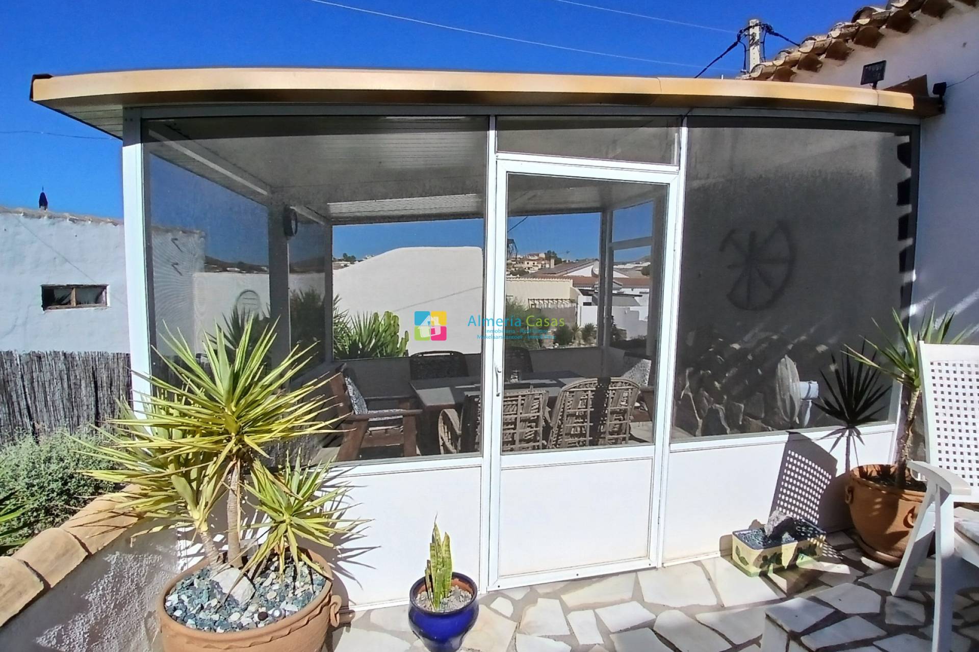 Almeria Casas is verheugd om EXCLUSIEF deze charmante traditionele woning met 2 slaapkamers en 2 badkamers aan te bieden, verscholen in een rustige hoek van het populaire dorp Limaria. De woning verkeert in uitstekende staat en beschikt over een ruime tuin en twee terrassen waar u kunt genieten van de rust van de omgeving. Limaria ligt op slechts 10 minuten rijden van de grote marktstad Albox, waar alle voorzieningen te vinden zijn, en op 15 minuten rijden van het stadje Arboleas. De stranden van Vera, Garrucha en Mojácar zijn in minder dan 45 minuten te bereiken. Er is parkeergelegenheid vlakbij het huis en een kort verhard pad leidt naar het mooie, ruime terras aan één kant van het huis. Aan één kant van dit terras bevindt zich een beschutte eethoek in de openlucht met een deur naar het tweede terras met uitzicht op de tuin en het dorp en de heuvels daarachter. De voordeur is toegankelijk vanaf het eerste terras en geeft direct toegang tot de gezellige, comfortabele woonkamer met een plafondventilator en een airconditioning die zowel warme als koude lucht levert. Een trede vanaf hier brengt ons naar de ingerichte keuken met een dubbele spoelbak, voldoende werkruimte en een plafondventilator. Een deur leidt vanuit de keuken naar de master suite, die bestaat uit een grote tweepersoonsslaapkamer met airconditioning, een deur naar een lichte kleedkamer en tot slot naar de en-suite badkamer met douche. De tweede slaapkamer, een ruime tweepersoonsslaapkamer, is toegankelijk via een korte gang vanuit de woonkamer, die ook toegang geeft tot de tweede badkamer met douche. Buiten is de tuin verdeeld over verschillende beplante terrassen tot een grote benedenverdieping, die is verdeeld door beplanting. Dit gebied is groot genoeg om indien nodig een zwembad of een volwaardig badmintonveld aan te leggen. Er zijn diverse bergingen en de tuin is volgroeid en beplant met een ruime selectie inheemse en bloeiende planten, cactussen en een paar olijfbomen. Het terrein is stedelijk, waardoor er indien nodig extra gebouwd kan worden. Met een scala aan traditionele kenmerken, maar met alle voordelen van een modern huis, plus een veilige tuin, is dit een geweldige vakantiebestemming of ideaal voor een stel of een klein gezin. Wilt u meer informatie of een afspraak maken om dit fantastische huis te bezichtigen? Neem dan gerust contact met ons op.