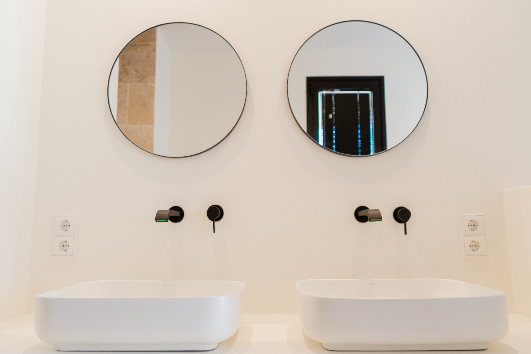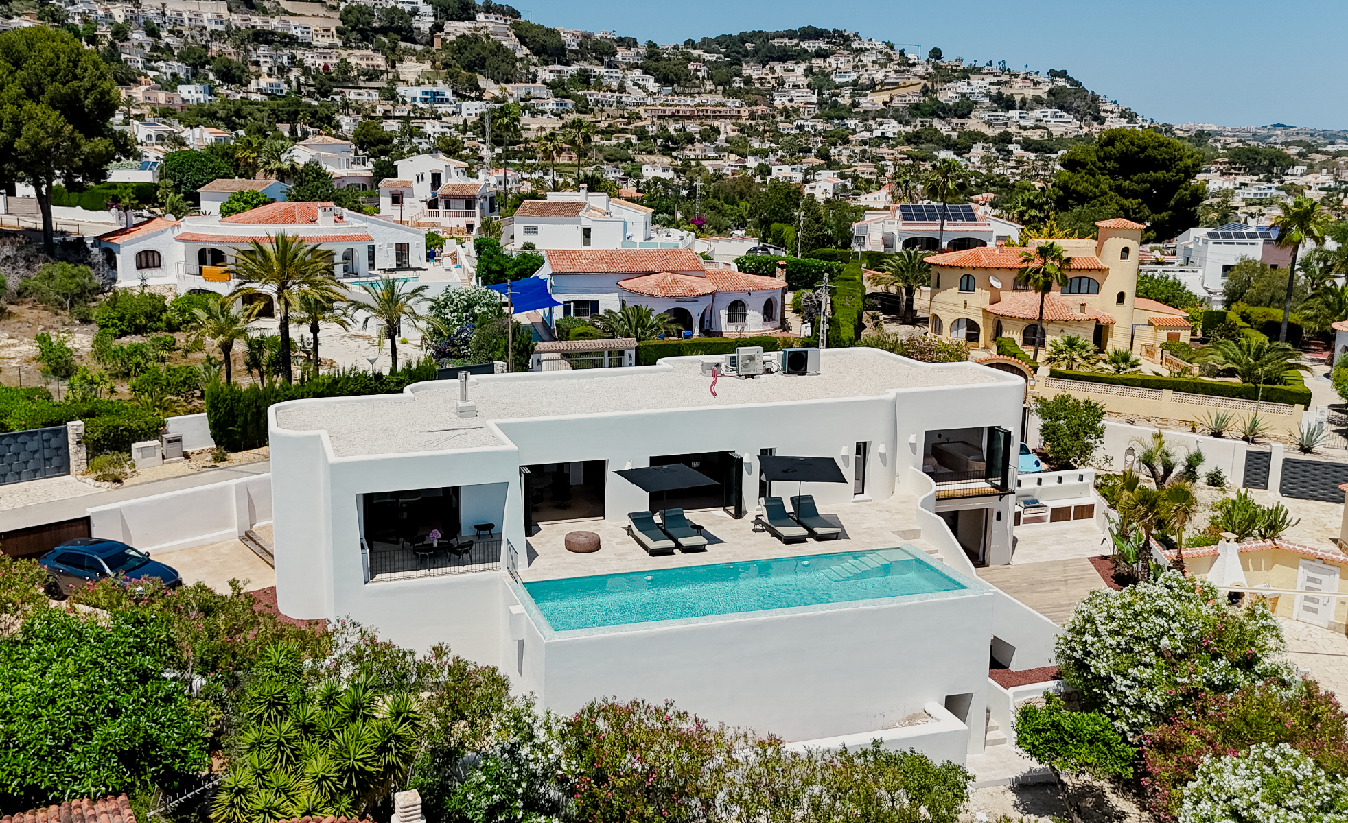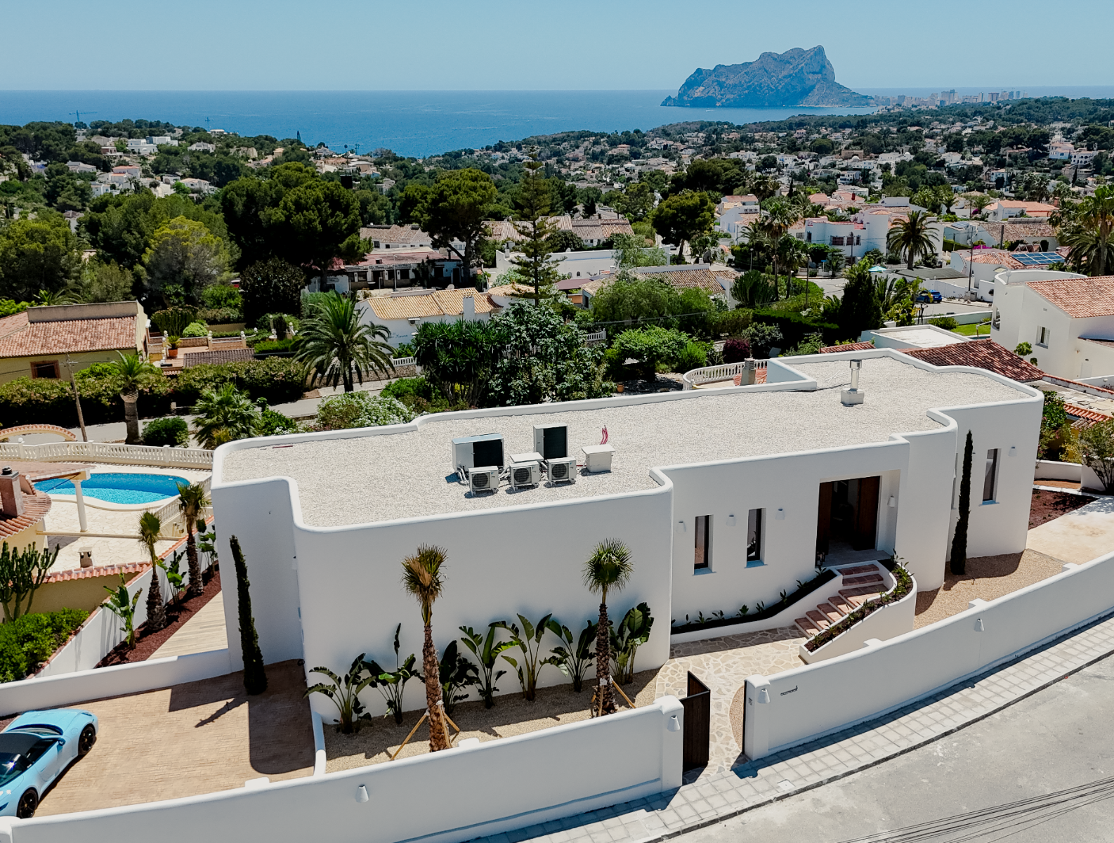 Mediterrane perfectie op toplocatie in Benissa In de prestigieuze woonwijk San Jaime in Benissa wacht een residentie die mediterrane elegantie en hedendaagse luxe tot een kunstvorm verheft. Hier, waar de Middellandse Zee en de imposante Peñón de Ifach de horizon bepalen, ontvouwt zich een leefstijl die even zeldzaam als uitzonderlijk is. Architectuur & indeling Vanaf het eerste moment ademt deze villa exclusiviteit. Twee private opritten, ruimte voor vier wagens en drie afzonderlijke ingangen bieden een ongeëvenaarde combinatie van comfort, privacy en flexibiliteit. Binnen verwelkomt een stijlvolle inkomhal je in een open leefruimte waar licht, ruimte en verfijning samenkomen. De gezellige loungehoek met haard vormt het hart van de woning, terwijl de maatwerk designkeuken een toonbeeld is van vakmanschap – uitgerust met topapparatuur, waaronder twee vaatwassers, een stoomoven, inductiekookplaat en een wijnklimaatkast. Een droom voor elke fijnproever. Buitenleven & uitzicht Via grote schuiframen van Reynaers Aluminium vloeit de leefruimte naadloos over in een zonovergoten terras met infinity pool, ligzone en een buitenlounge met koelkast, vriezer en spoelbak – een perfecte setting voor zwoele zomeravonden. De mediterrane tuin, rijkelijk aangelegd met palmen en volwassen beplanting, is een groene oase van rust, volledig voorzien van automatische irrigatie. Slaapvertrekken & wellness De master suite op de begane grond is pure verwennerij: een panoramisch zeezicht, vrijstaand bad, inloopdouche en een op maat gemaakte dressing in thermisch behandeld Movingui-hout – een luxueus accent dat doorheen de hele woning wordt doorgetrokken. Op de benedenverdieping bevinden zich twee ruime slaapkamers met en suite badkamers en directe toegang tot een privéterras, naast een tweede buitenkeuken met BBQ. Een polyvalente ruimte biedt talloze mogelijkheden – van extra slaapkamers tot een gym, wellness of home cinema. Afwerking & technologie Overal spreekt de afwerking van absolute topklasse: Sanitair van Villeroy & Boch Klimaatregeling van Daikin met geïntegreerde ventilatie en airconditioning Vloerverwarming en hoogwaardig maatmeubilair Deze residentie is niet alleen instapklaar, het is de weerspiegeling van een tijdloze elegantie.