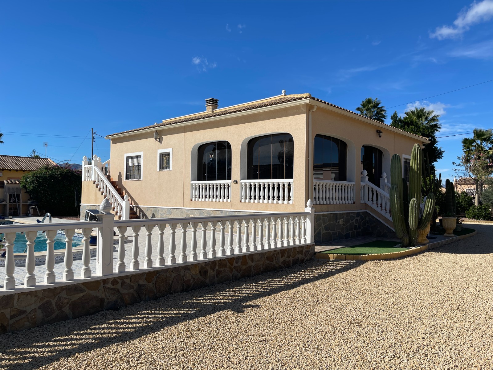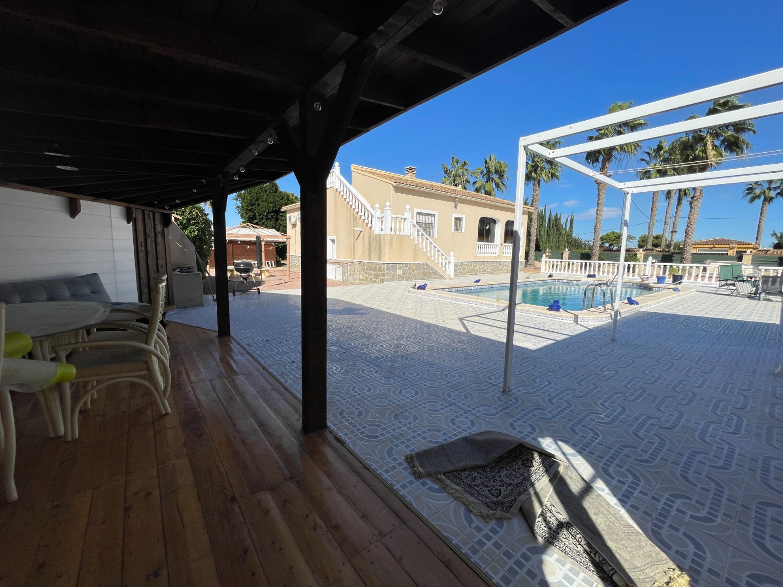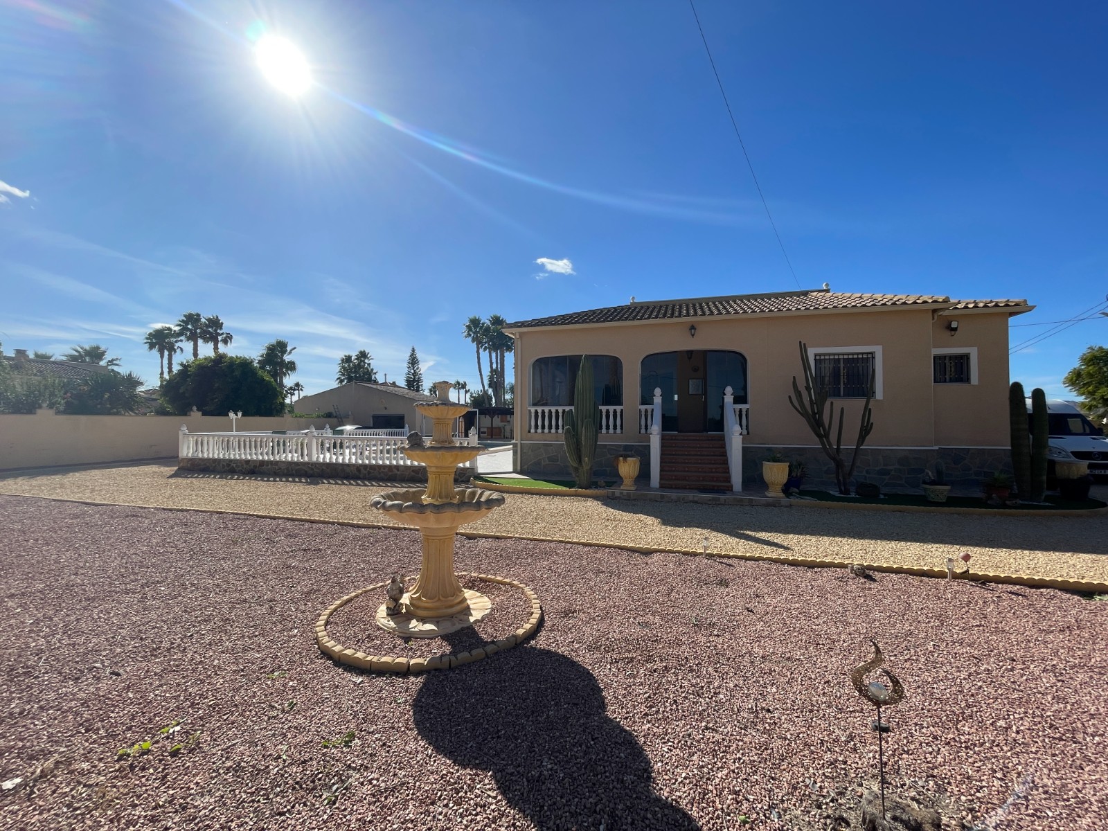 Vrijstaande villa in Catral – 239 m² op een perceel van meer dan 2.100 m²Ontdek dit charmante huis met alle comfort en ruimte die u nodig heeft. Het hoofdgebouw heeft 3 slaapkamers, waarvan één met eigen badkamer, 2 complete badkamers, apart keuken, ruime woonkamer en afzonderlijke eetkamer. Er is ook een ingesloten glazen terras, perfect om van de zon te genieten, zelfs op koelere dagen.Op het perceel staat ook een gezellig houten gastenhuis van 45 m² met 1 slaapkamer, badkamer, keuken en woonkamer — ideaal voor gasten of een familielid dat zijn eigen ruimte wil hebben.Buiten vindt u alles om van het leven in de buitenlucht te genieten: Tuin met twee schuren, Privézwembad met chill-outgedeelte, en voldoende ruimte om te ontspannen of tijd door te brengen met het gezin. ???? Gelegen in Catral, dit huis bestaat al meer dan 20 jaar, is aangesloten op water en elektriciteit, en de SUMA-belasting (350€/year) ⚠️ Belangrijk: Geen woonvergunning, maar het huis kan zonder problemen bewoond worden.Een unieke kans voor wie op zoek is naar ruimte, onafhankelijkheid en rust in een natuurlijke omgeving.