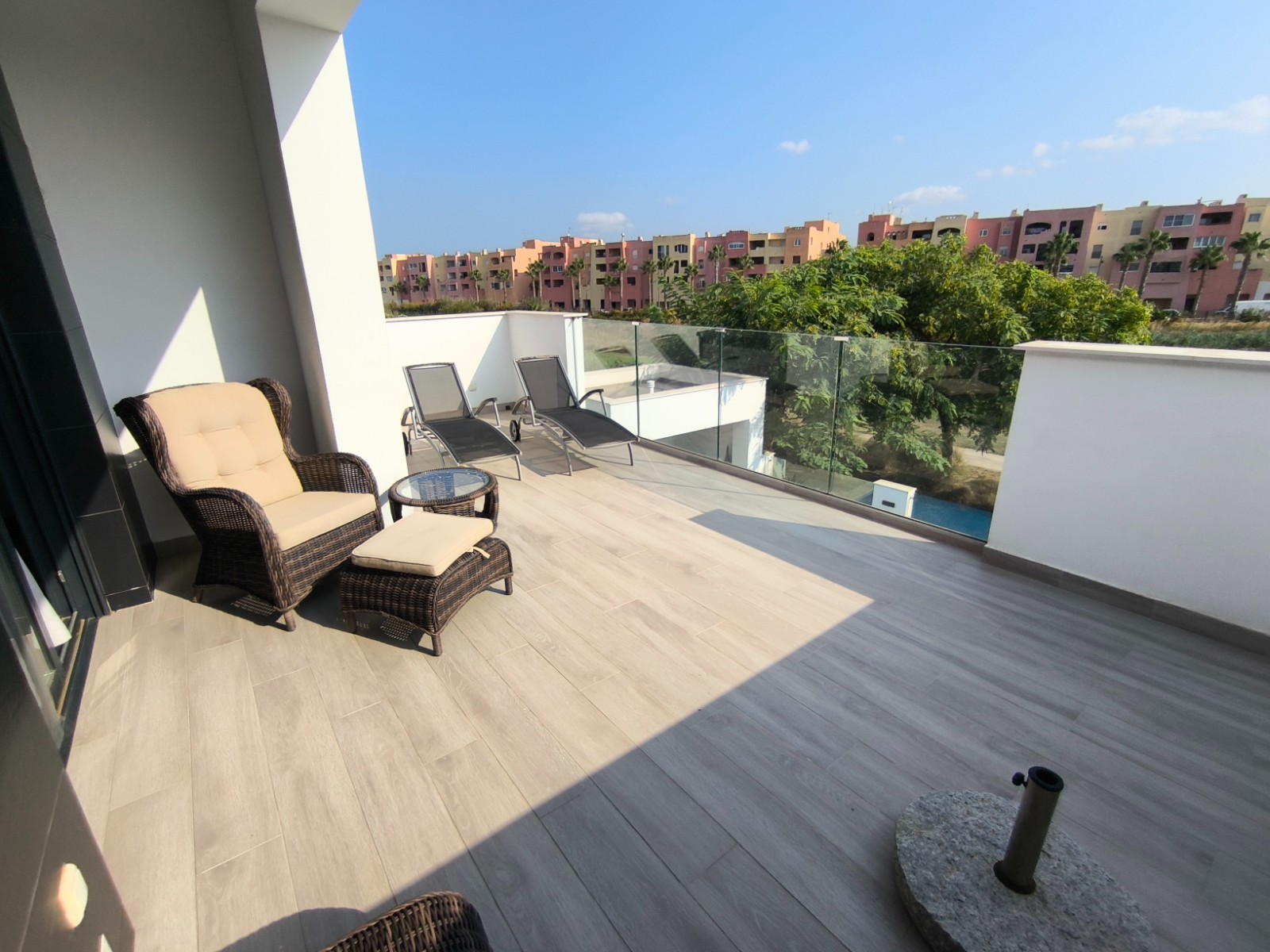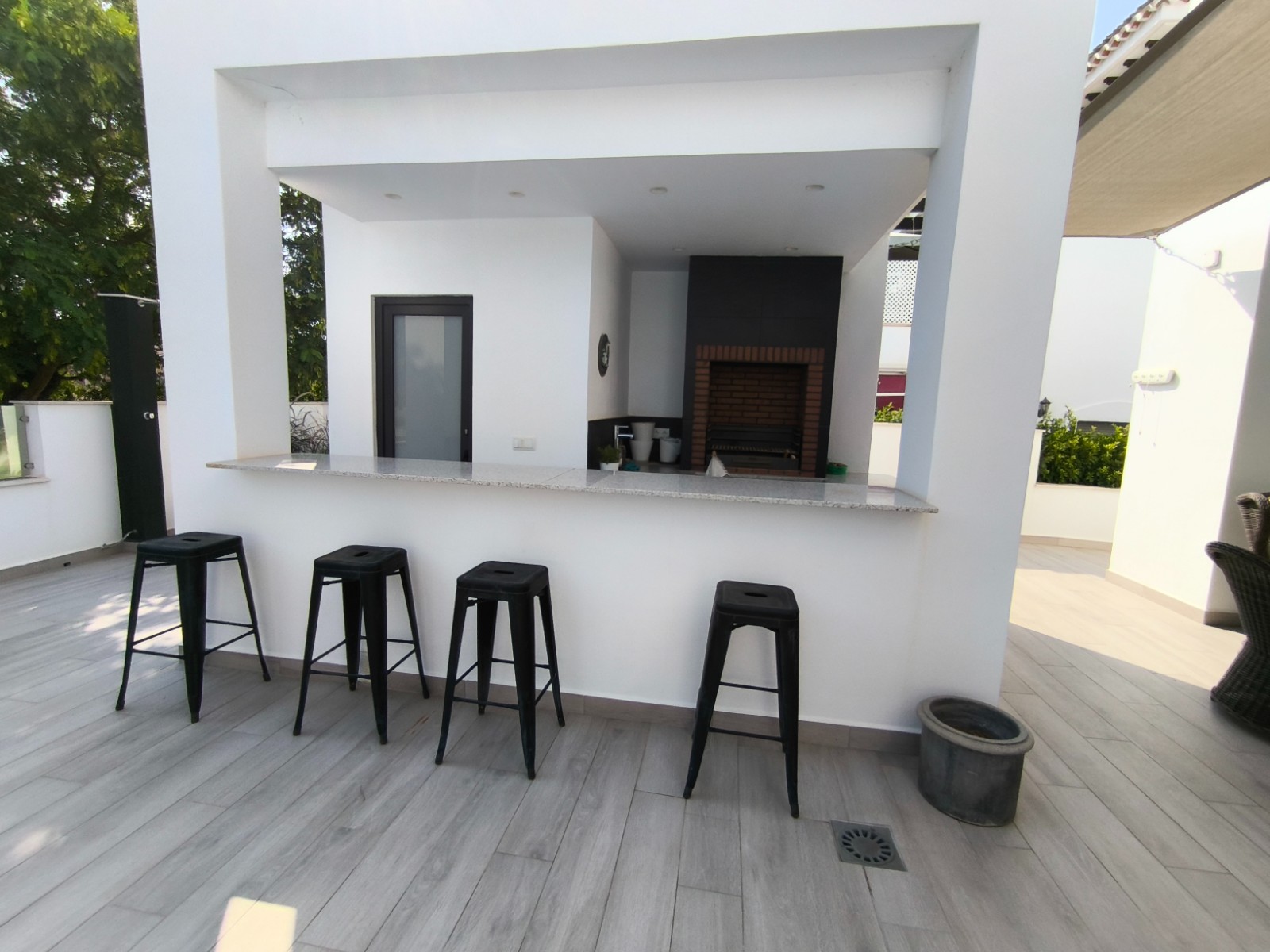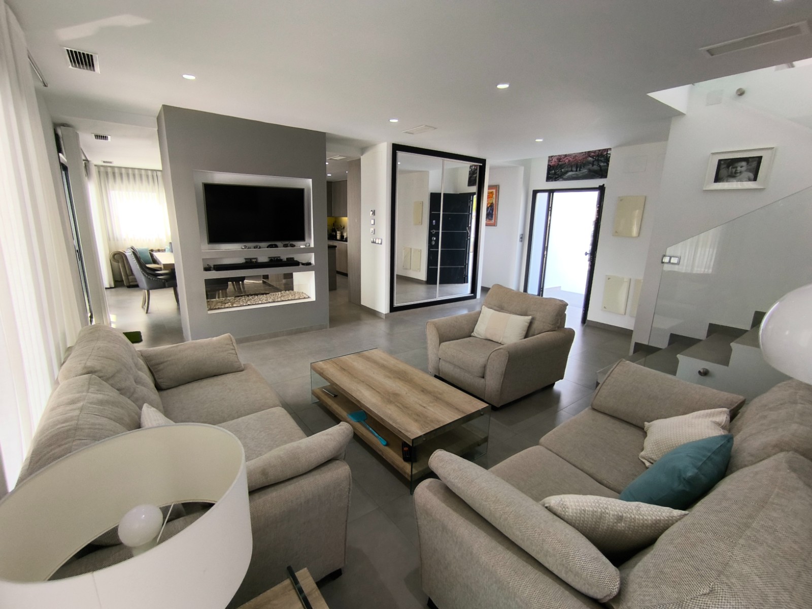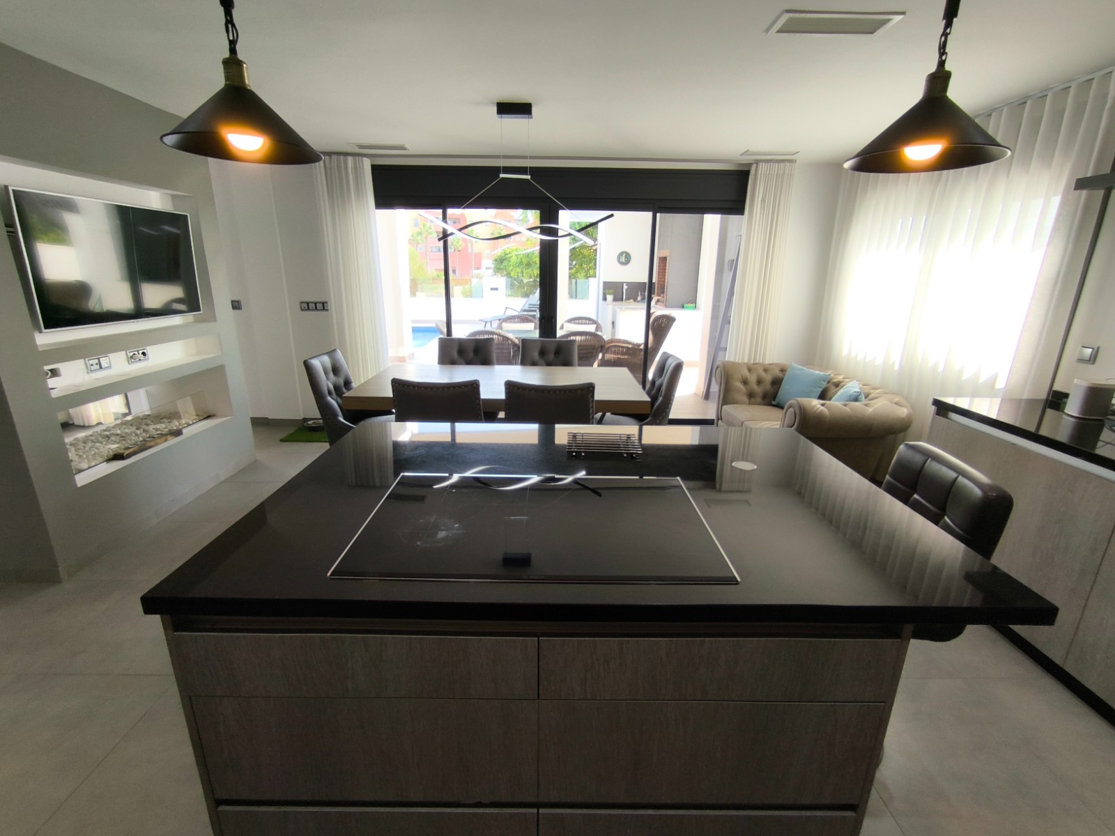 Wij presenteren u een exclusieve villa van in totaal 291 m², uniek door zijn ontwerp en ligging, gelegen op een privéperceel van 400 m² met een prachtig uitzicht op hole 9 van de golfbaan. ✨ Belangrijkste kenmerken: 6 slaapkamers en 5 complete badkamers.Zuidgericht, met de hele dag door natuurlijk licht.Grote privézwembad en buitengedeelte met chill-out zone en overdekte barbecue met bar.Overdekte buitenparkeerplaats met pergola voor 2 auto’s en berging.